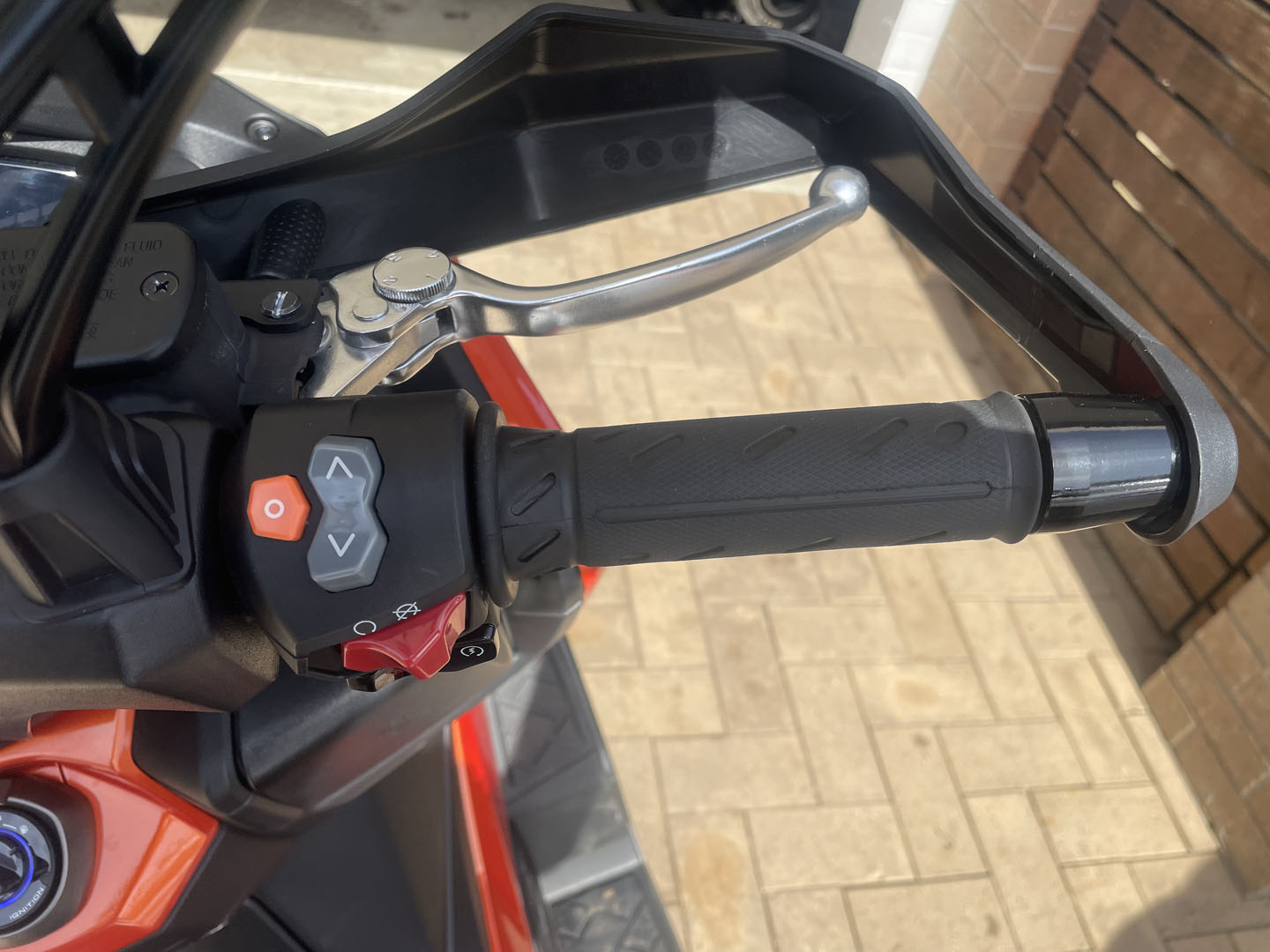 The DT X360 is essentially a Downtown 350i with a few bolt-on modifications and an all new look, it’s great to see that they’ve changed the overall appearance of the bike completely compared to its counterpart, the headlights, taillight and side panel have all been redesigned and given an eye catching orange paint job. Honestly I think it looks pretty trick with the knuckle protectors and muddies. It gives it this rugged appeal which I hoped had function and not just form…