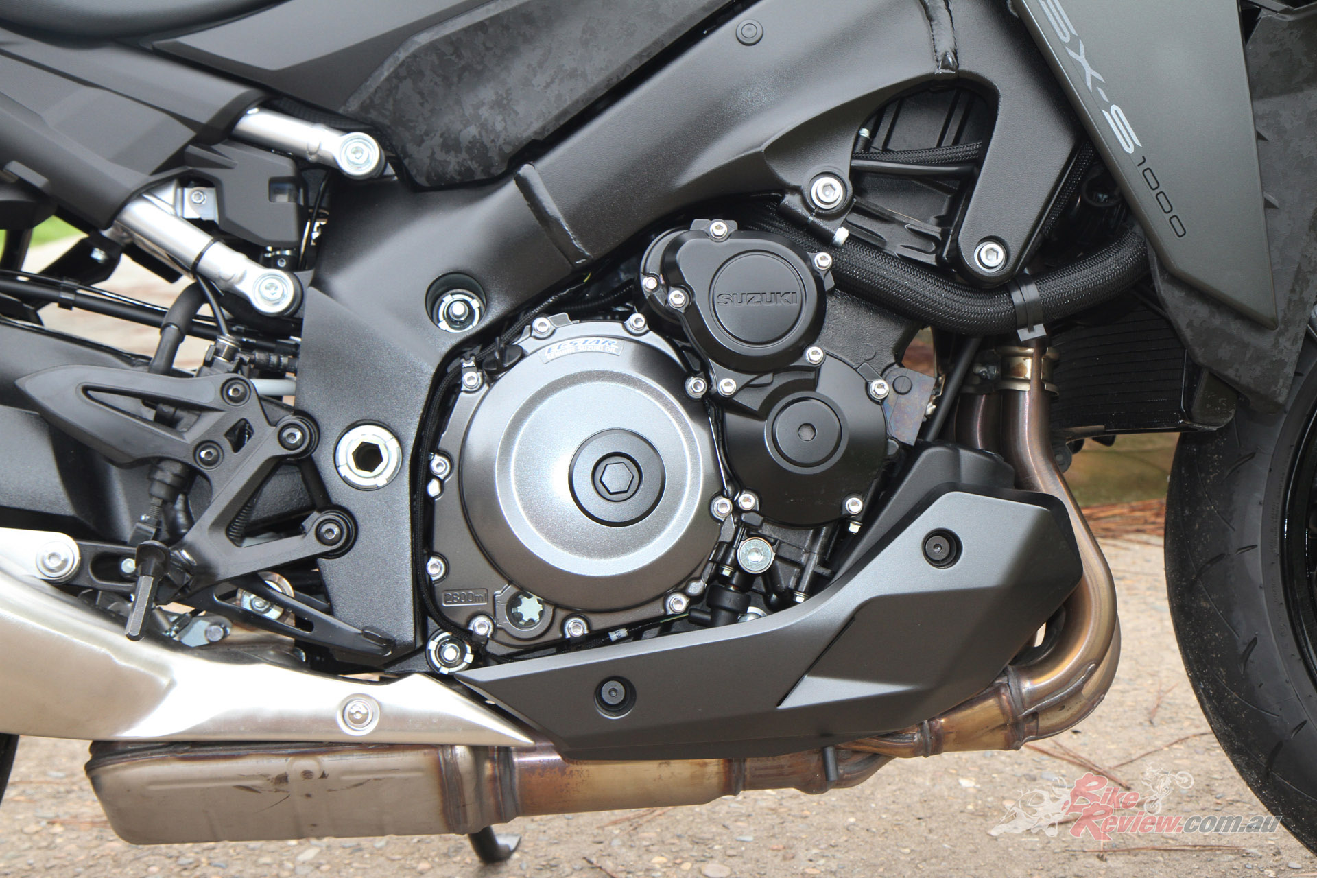 The 4-2-1 exhaust system for the new GSX-S1000 was completely redesigned and tuned. Suzuki say their goal was to maximise overall performance while satisfying Euro5 emission standards. A change to the bore size of the new electronic throttle-bodies were made to help achieve a better balance between control over idling speed and power output characteristics. One benefit of the new system is more controllable when the rider opens the throttle to accelerate out of a corner.