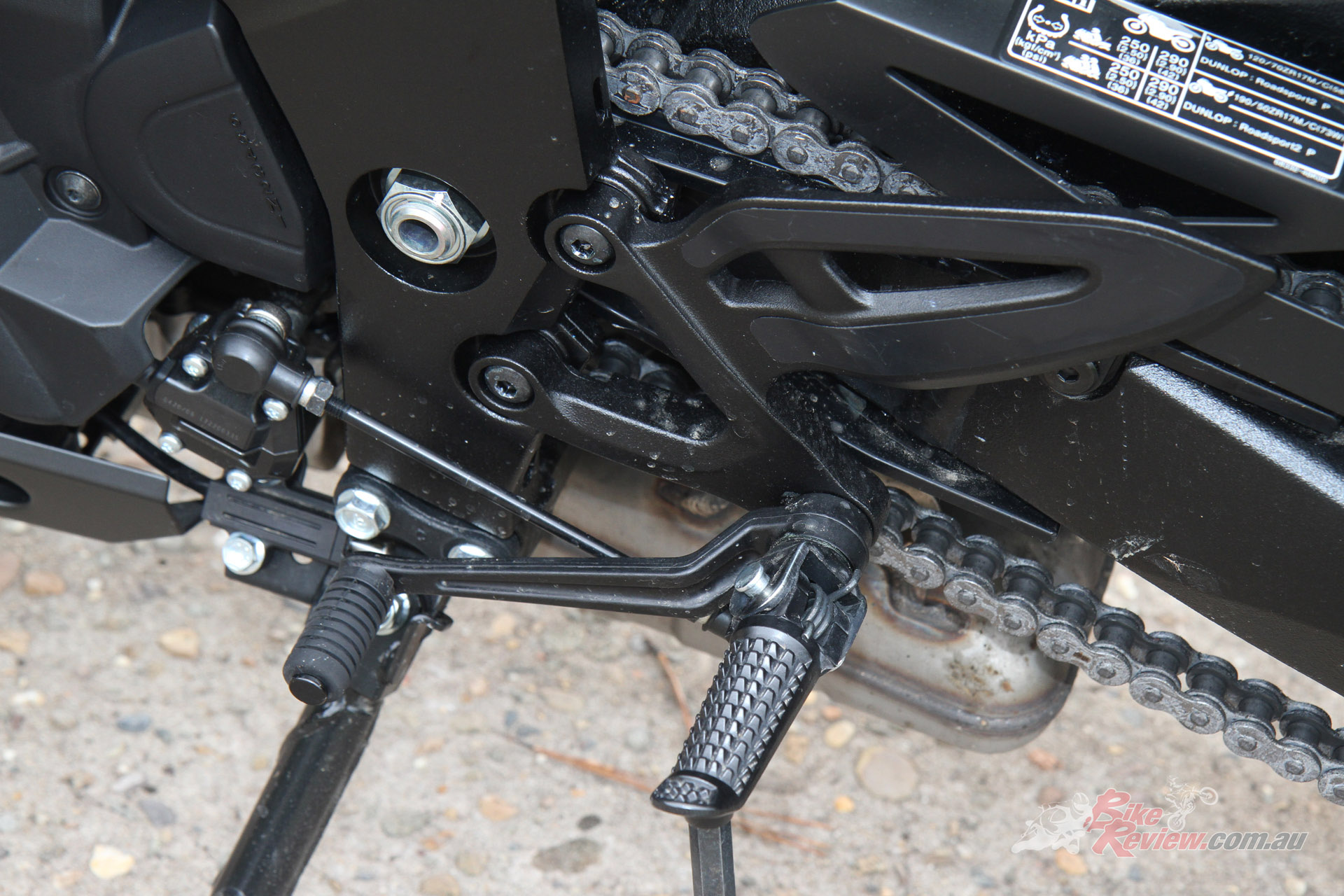 The 43mm KYB inverted forks have fully adjustable damping, rebound, compression and spring preload, while the link-type rear suspension is adjustable for rebound damping and spring preload. Various settings were thoroughly tested in relation to changes made to the internal structure of the tyres before the optimum settings were applied to give nimbler handling and improved steering.