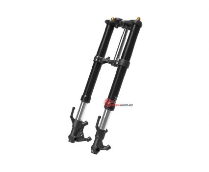 The 2022 YZF-R7 features inverted KYB 41mm front forks with optimised spring rates and damping settings for front-end feel during cornering and braking. The product specific settings make for easy and predictable behaviour, Yamaha state, with a stiff feel for twisty roads and racetracks. The forks are fully adjustable for preload, rebound and compression damping force. The inverted KYB front forks are mounted to the steering tube via a forged aluminium lower triple-clamp, and a gravity-cast aluminium upper triple-clamp.