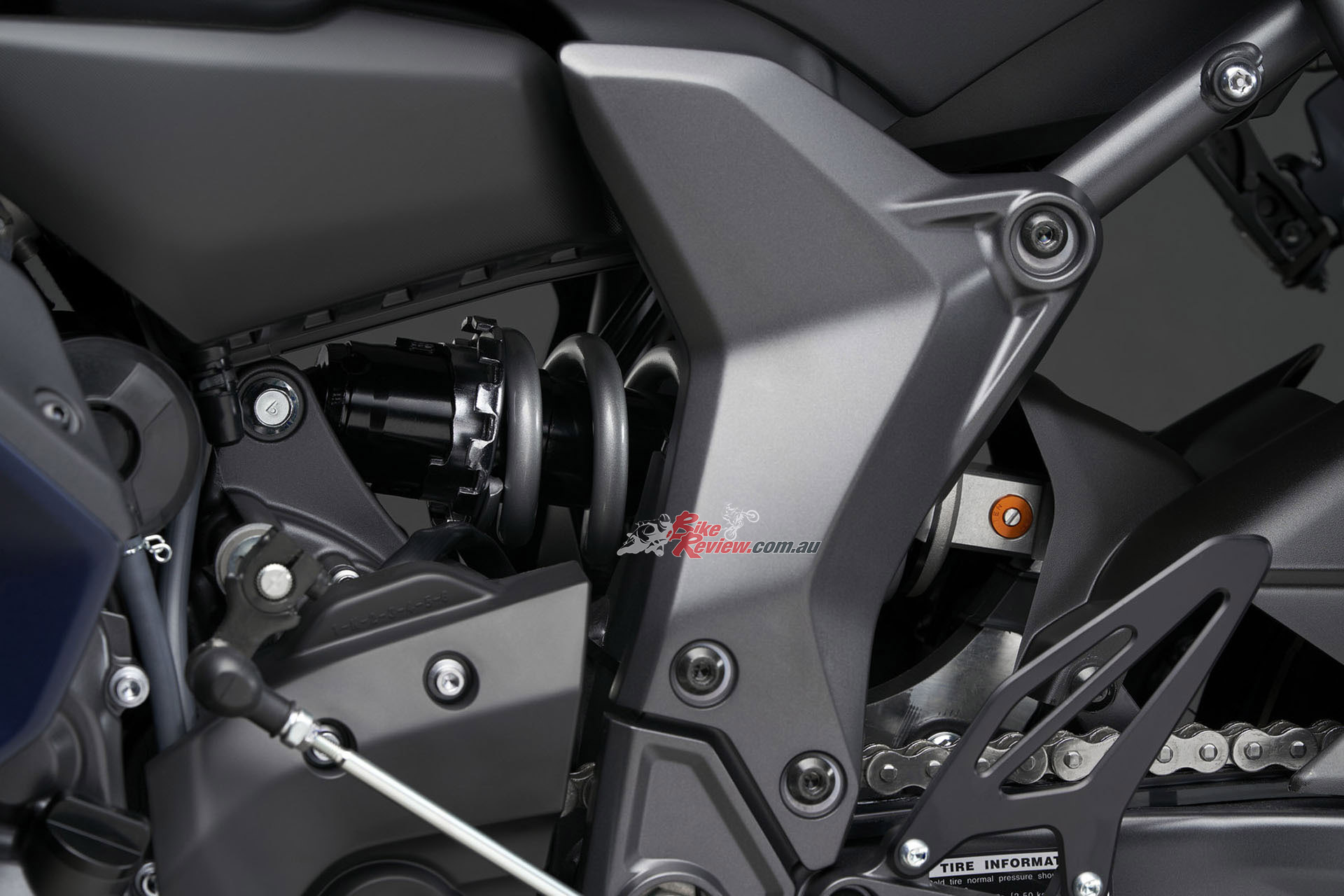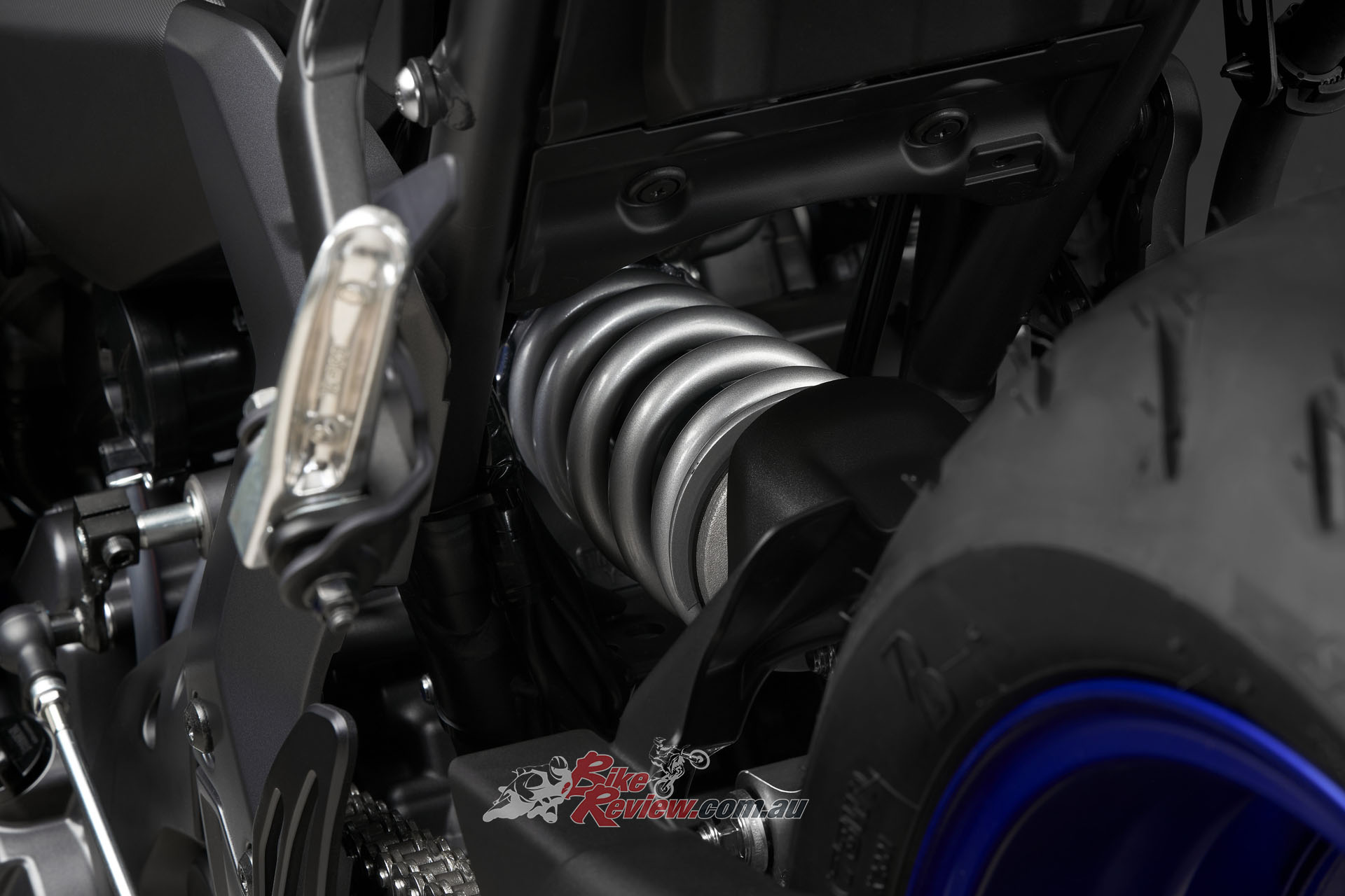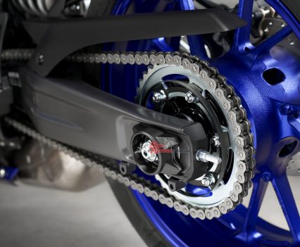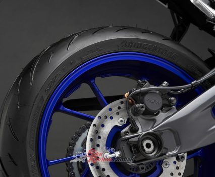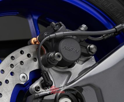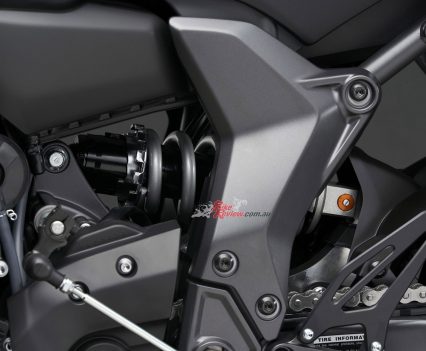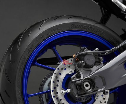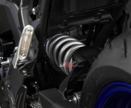 Yamaha say the link-type Monocross shock with adjustable spring preload and rebound damping strikes a balance between ride comfort and sporty performance for capability across a wide range of uses, from urban commuting to track days. The rear shock unit is mounted horizontally, fastened to the crankcase for efficient use of space and weight, contributing to mass centralisation and further highlighting the bike’s compact size.
