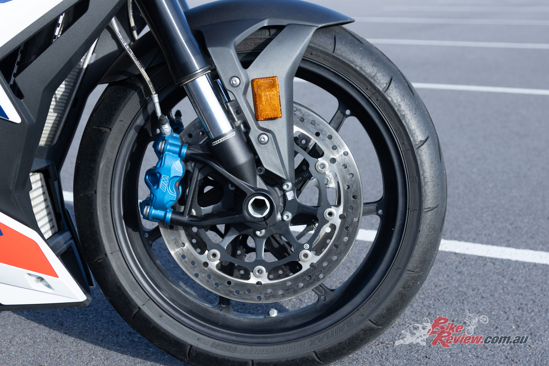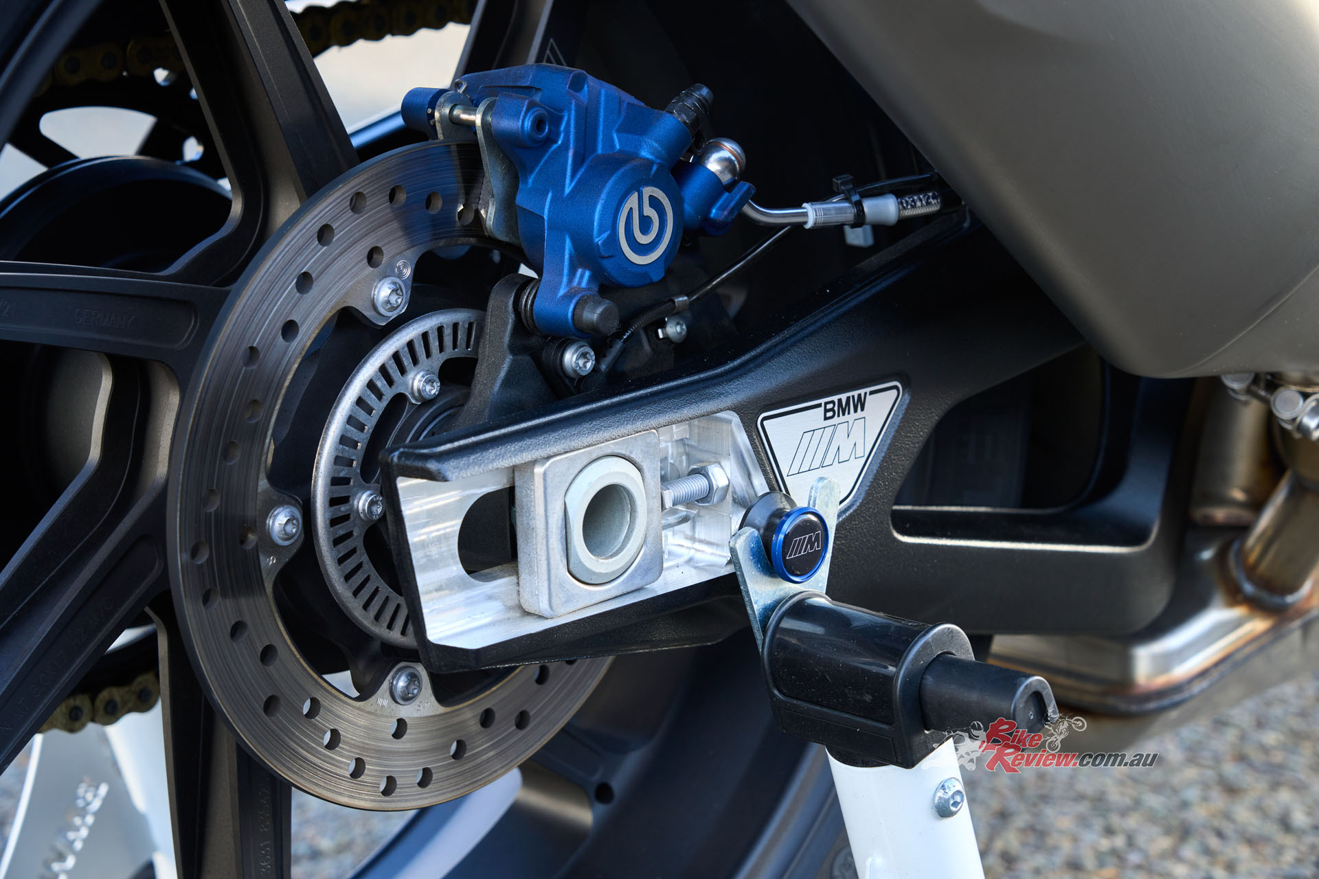 Brakes: BMW Motorrad ABS Pro, dual 320mm rotors, radial four-piston M calipers, single rear 220mm rotor, single-piston floating caliper, conventional master-cylinder.
