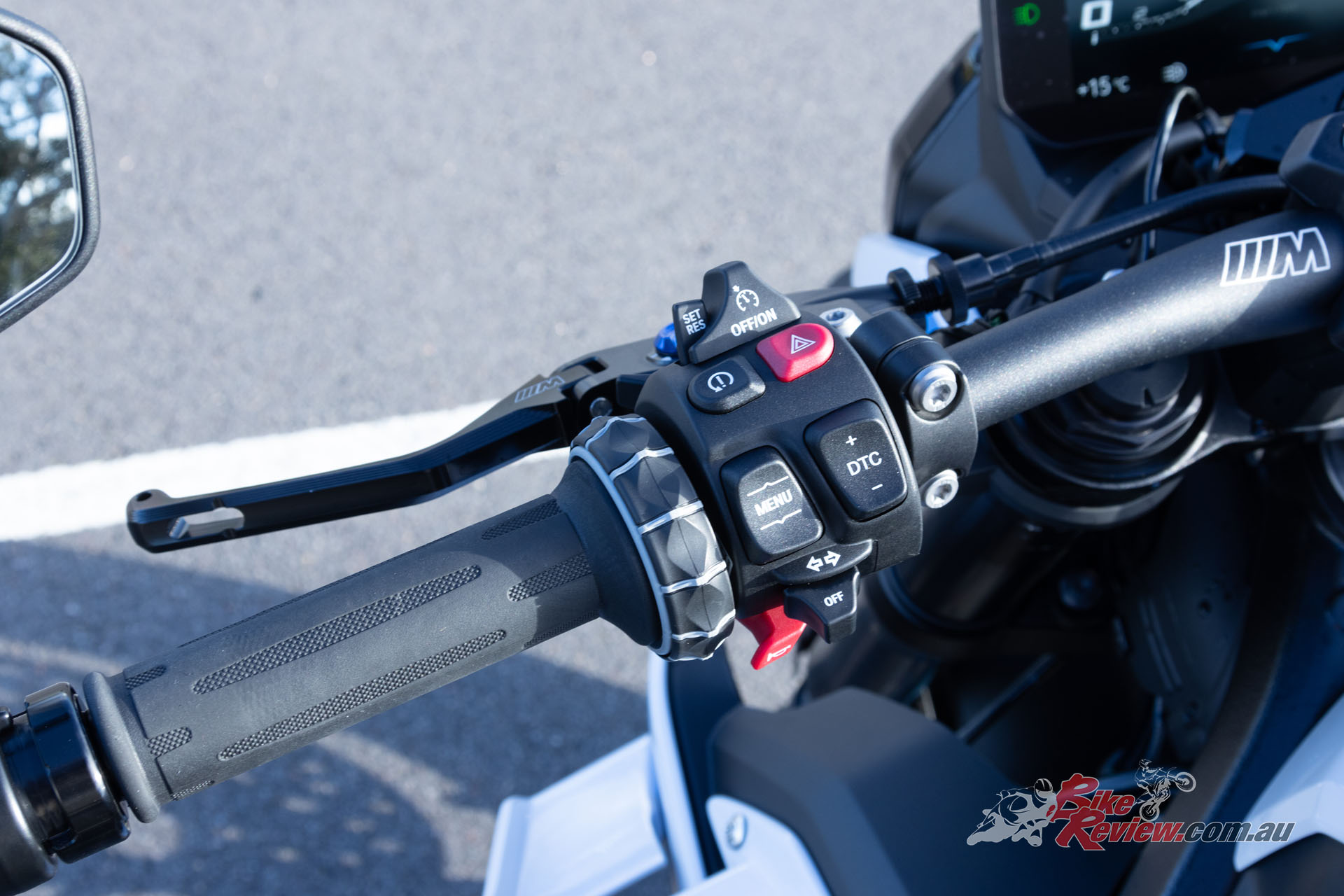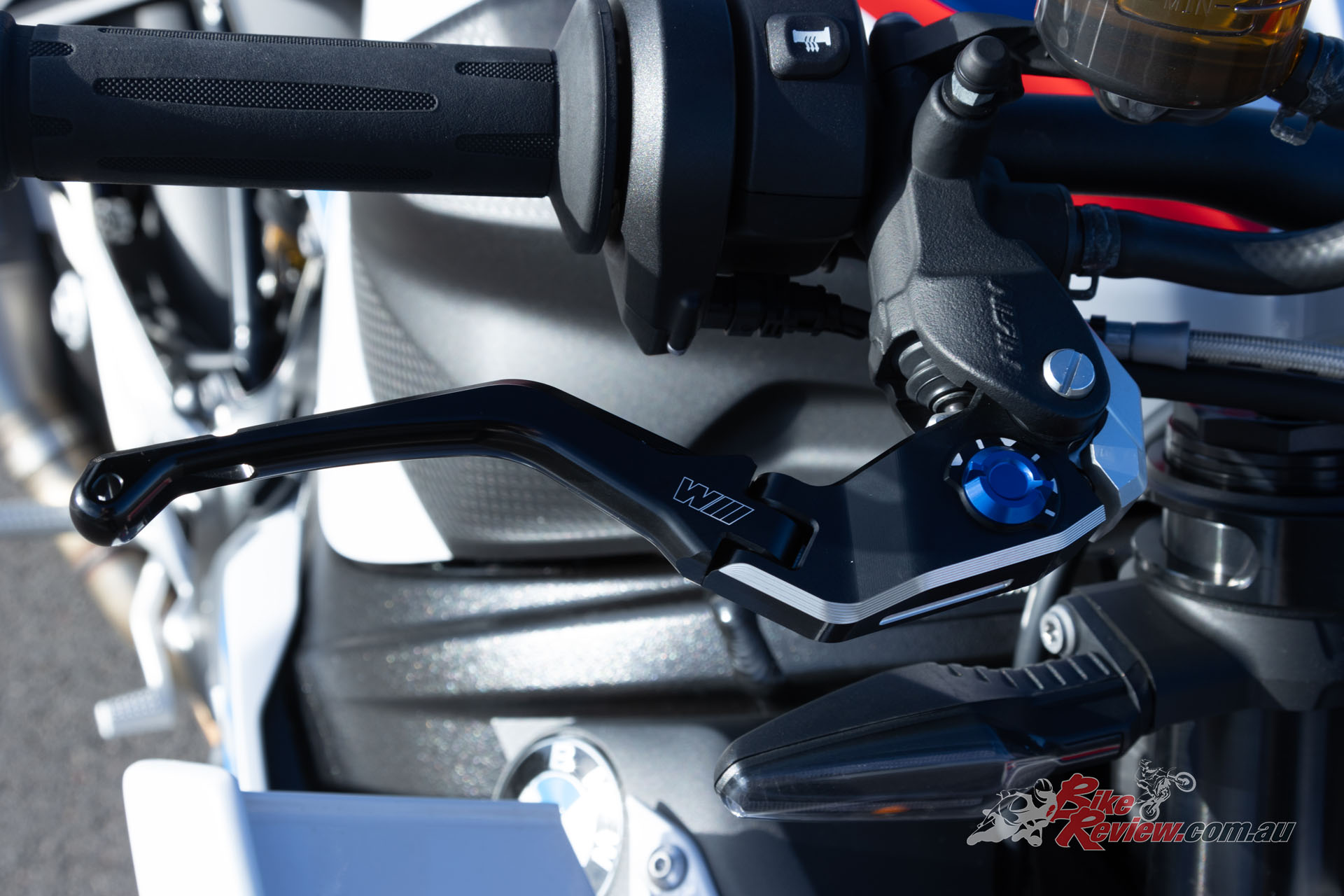 Luckily the braking system on the M 1000 R is up to the job. The front monoblock fixed radial calipers are made by Nissin and the rear is a Brembo item, both offer great feel and power and I only really needed two fingers on the adjustable billet lever.