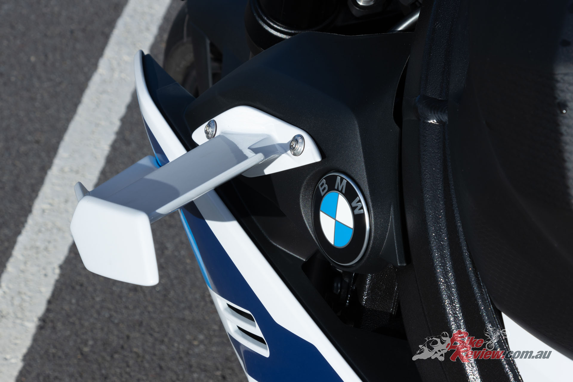 Although there are a few negatives, the main one is the finish on the panels. The fuel tank is great, but for some reason, on the rest of the panels BMW have decided not to clear coat over the graphics giving them a duller orange peel look.