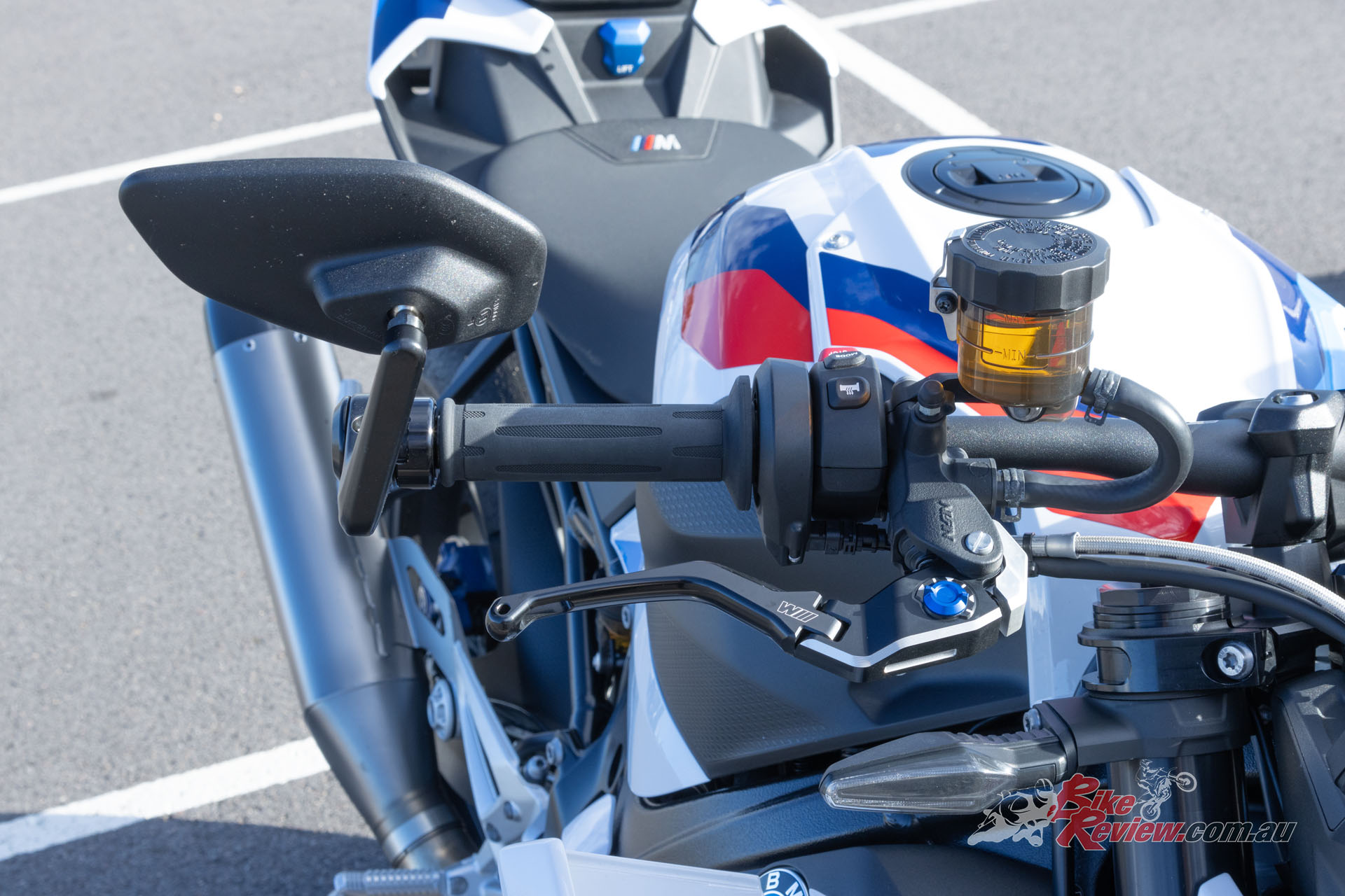 Handlebar end mirrors forged from aluminium are also new, while the fork legs have also been modified and are now designed to accommodate the new M brake callipers. An adjustable steering damper is also new for the M