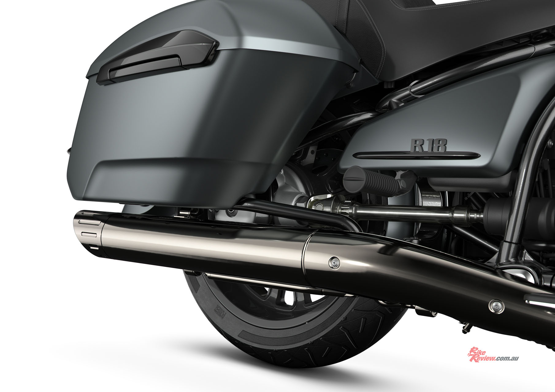 Other than those changes, the R 18 Roctane gets the blacked-out treatment with the heads and exhaust covers being dressed in dark chrome and the driveshaft receiving nickel plating over the chrome seen on other models. The tail section has been shaved and non-removable panniers added like those on the R 18 B and Transcontinental models.