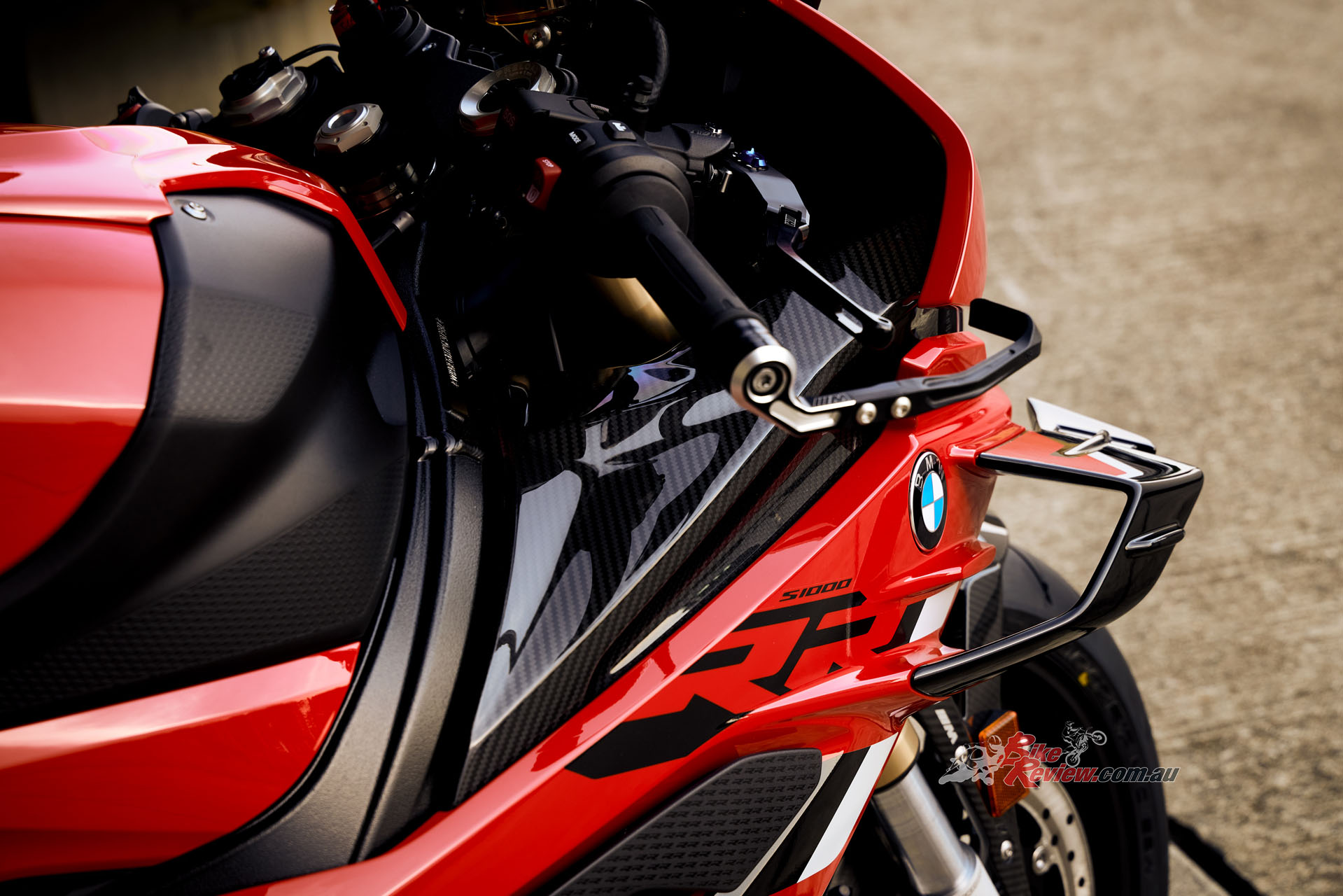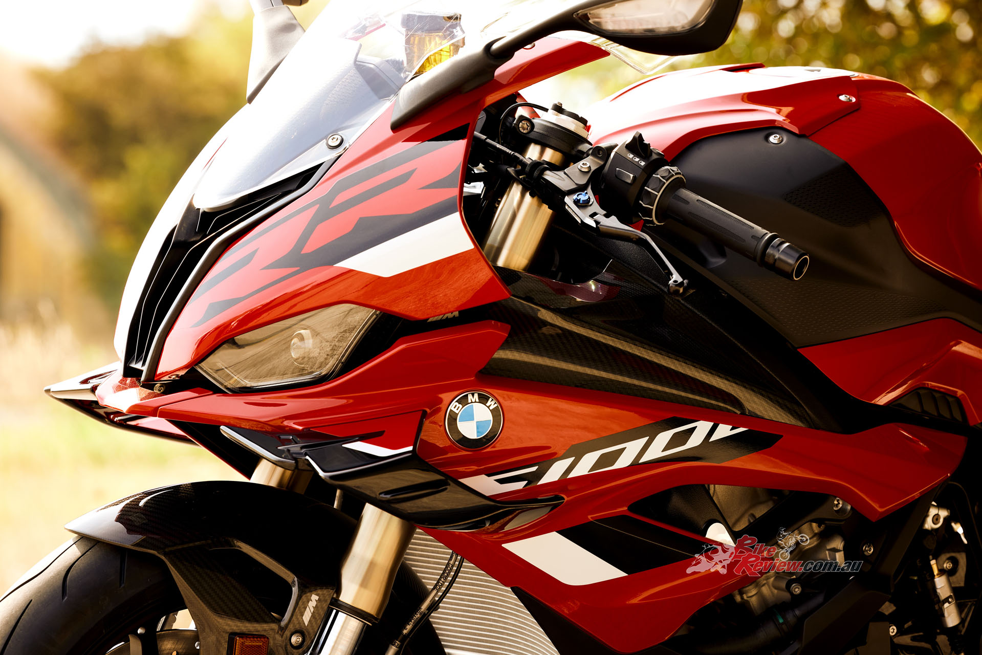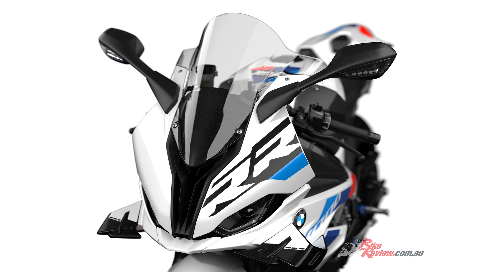 Same as what’s on the M 1000 RR model, winglets on the new RR aren’t just for looks but generate downforce and additional load on the wheels. All of this translates to the faster you go, the more grip up the front and assists in reducing the bike’s tendency to do a wheelie.