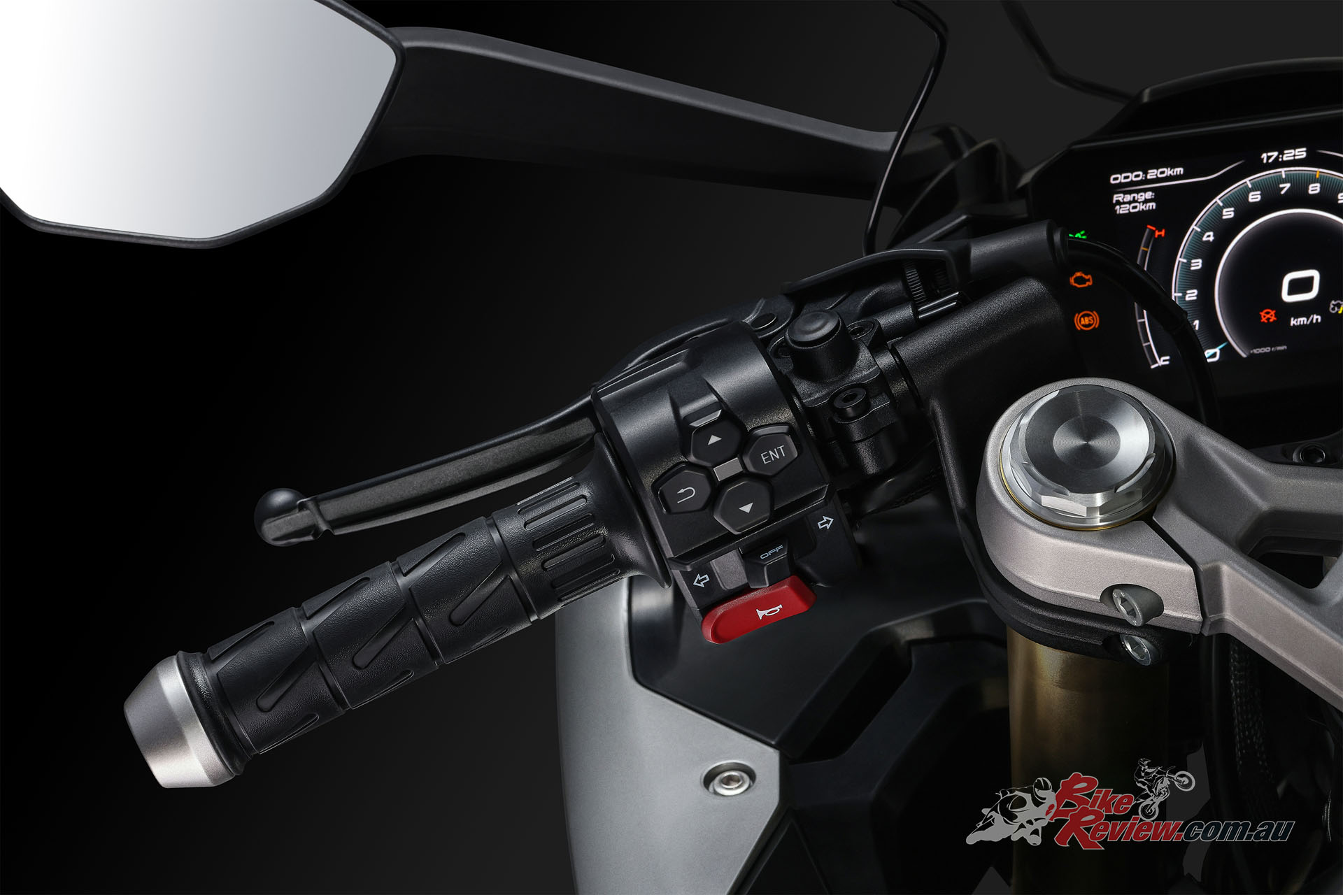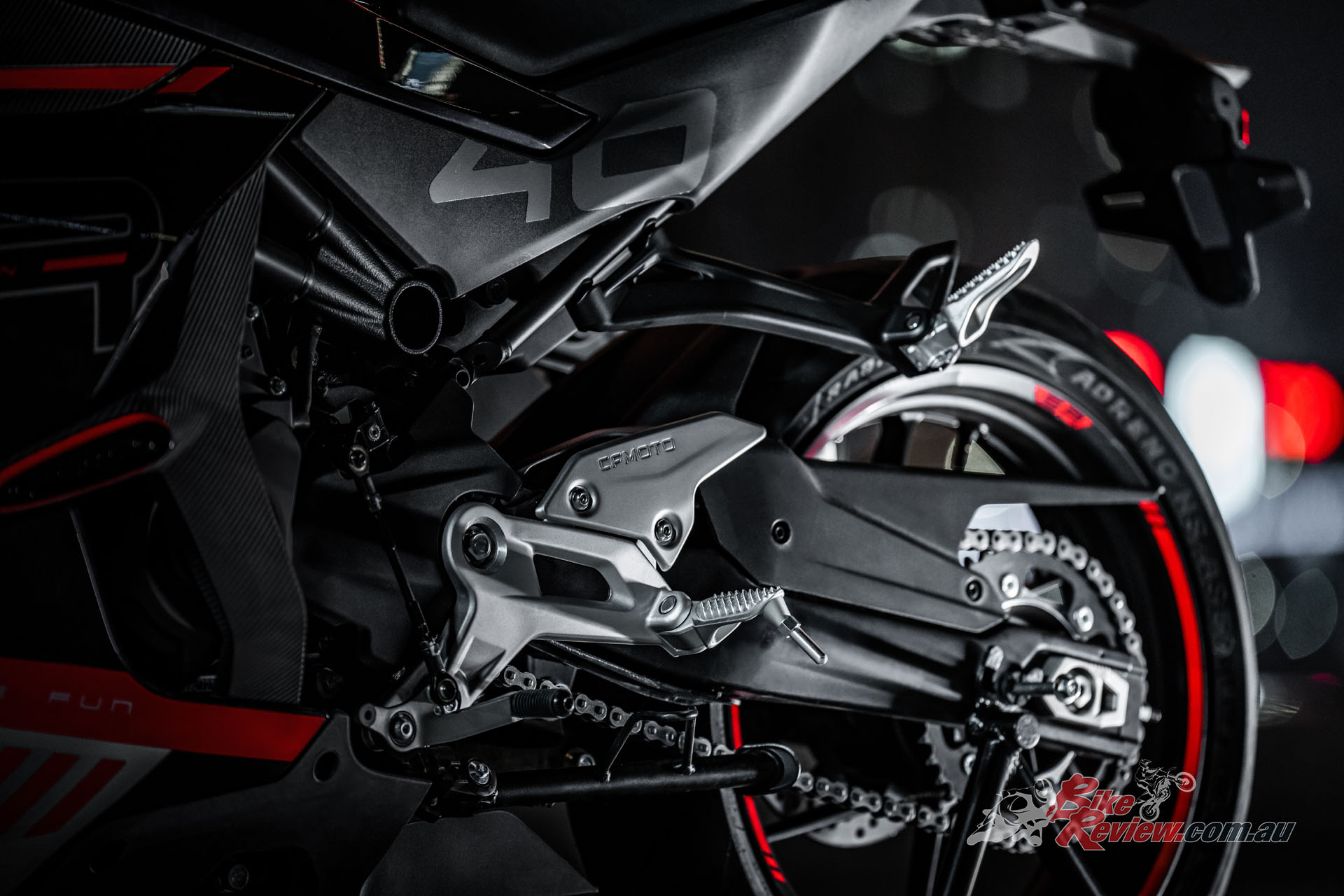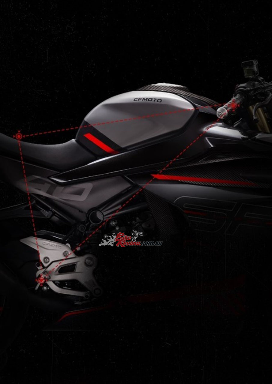 An FCC slipper clutch was added and CFMOTO say they kept the clutch action in mind to offer a wide bite point. The ‘slipper’ function aids in keeping the bike steady during sharp downshifts, reducing back-torque and keeping the rear tyre from hopping/locking up.
