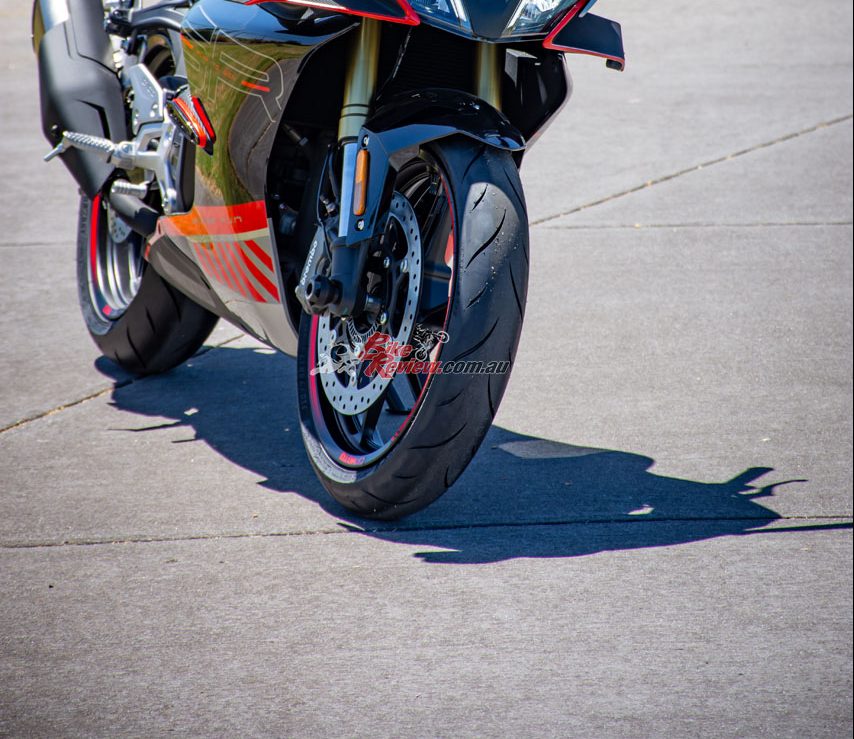 They get up to temperature extremely quickly and retain a lot of it. A 110/70 – 17 and 150/60 – 17 means you have plenty of lean angle at the front and rear. It’s also a super common size so you have a heap of branded tyre options.