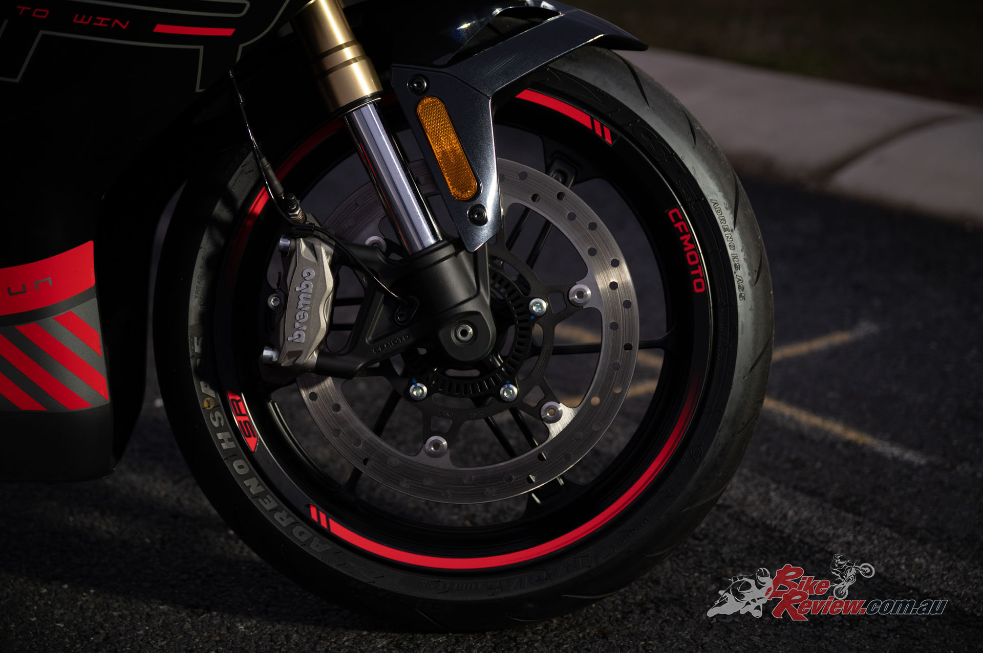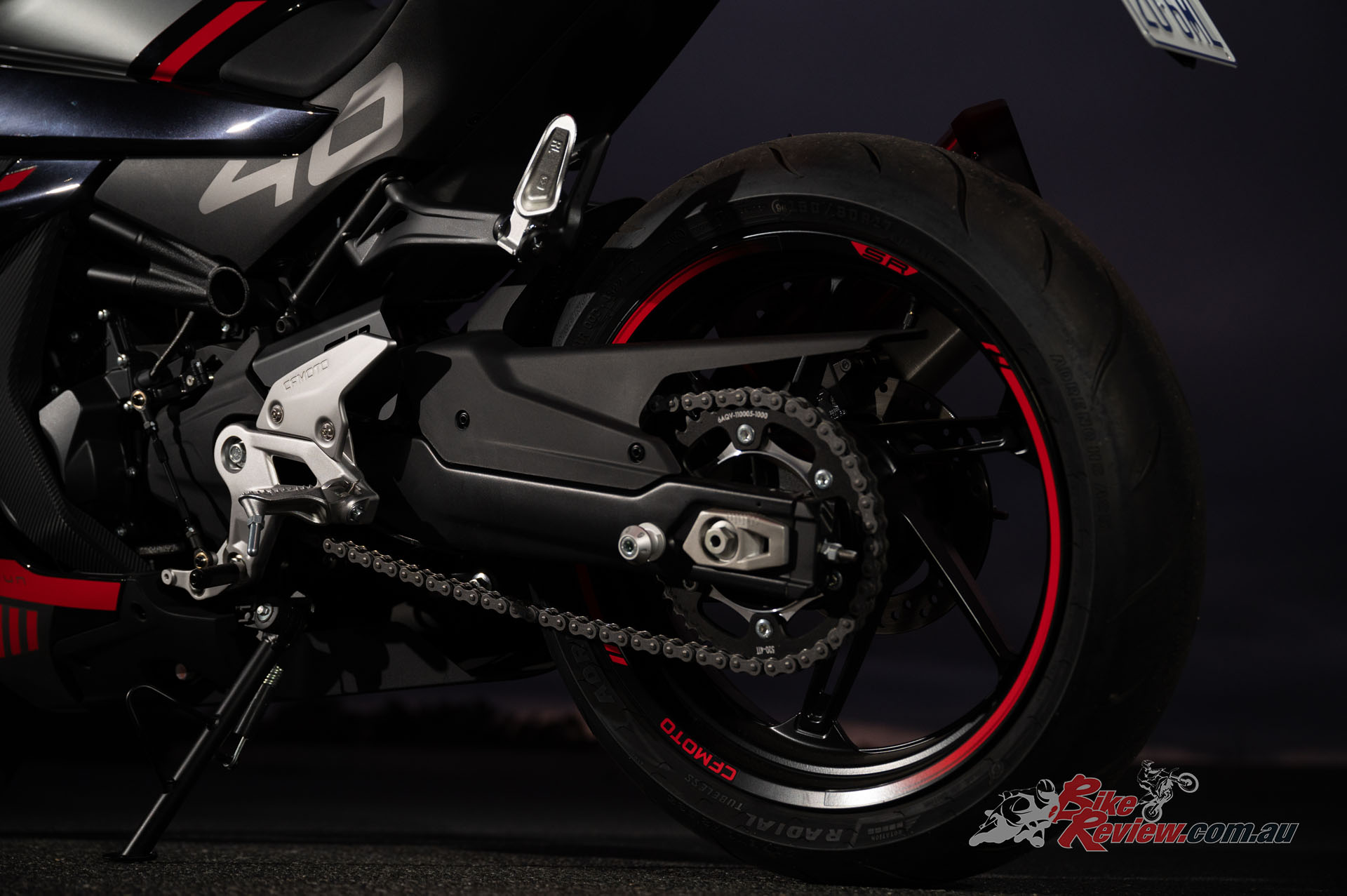The wheels are shod in what looks a hell of a lot like Pirelli Diablos, the boys at CFMOTO inform me that CST tyres that come on CFMOTO’s from the factory are actually a sub-brand of Pirelli. Yes, they’re China made but the grip levels from them are actually quite good! Pirelli and Metzeler tyres are also made in China anyway.