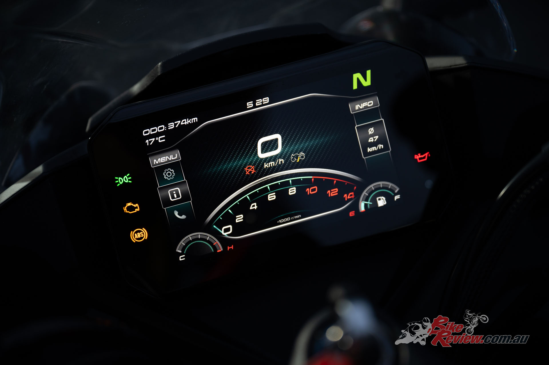 The 450SR features a 5in TFT screen with Bluetooth connectivity and t-box system. This is the type of equipment that P platers love, at this price-point it’s insane to think it’s included. The TFT is simple and easy to navigate, while Matt from CFMOTO kept an eye on us all day getting updates on GPS location, engine rpm and temperatures all through his phone.