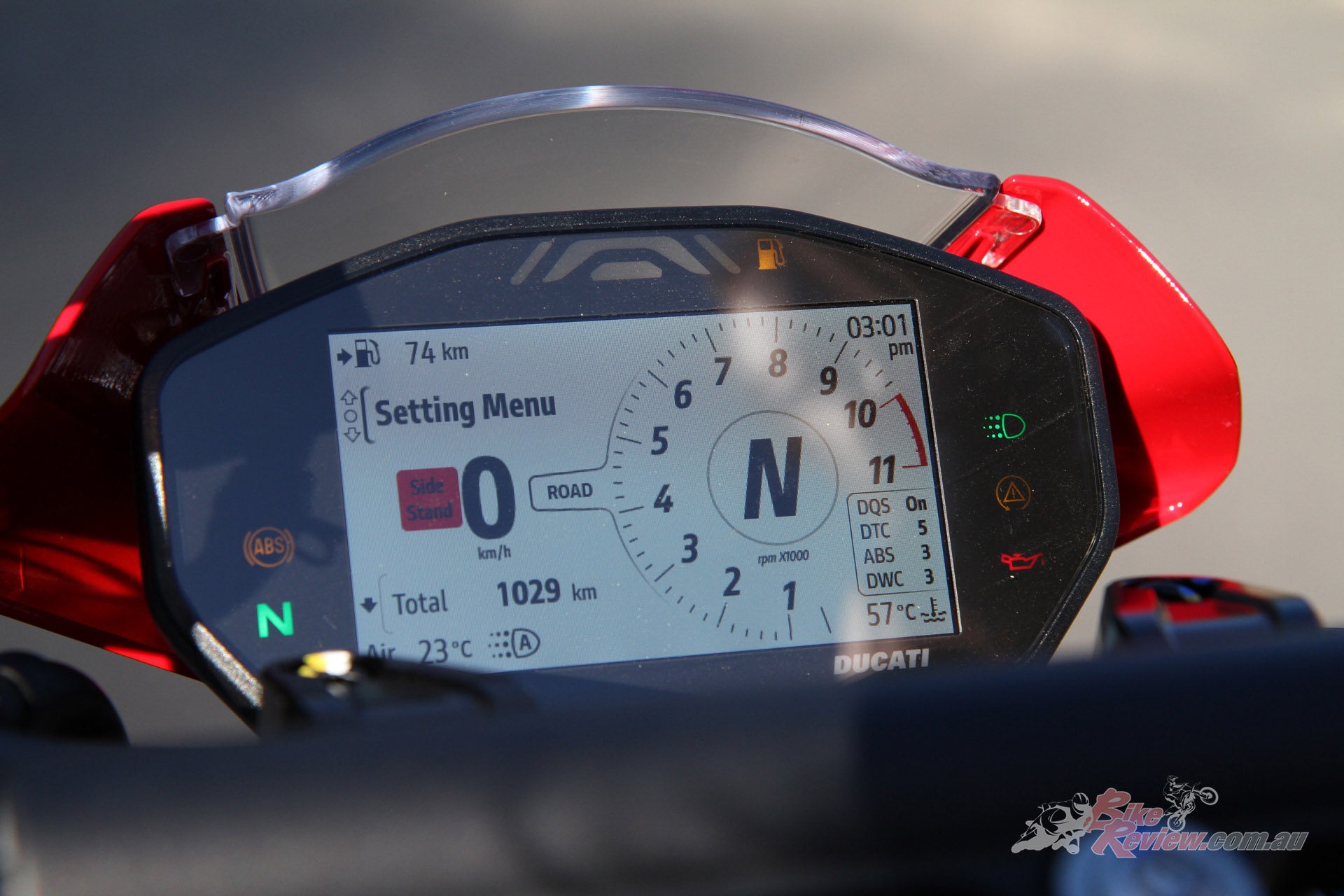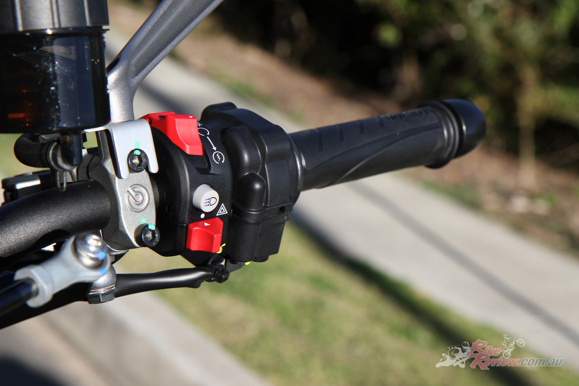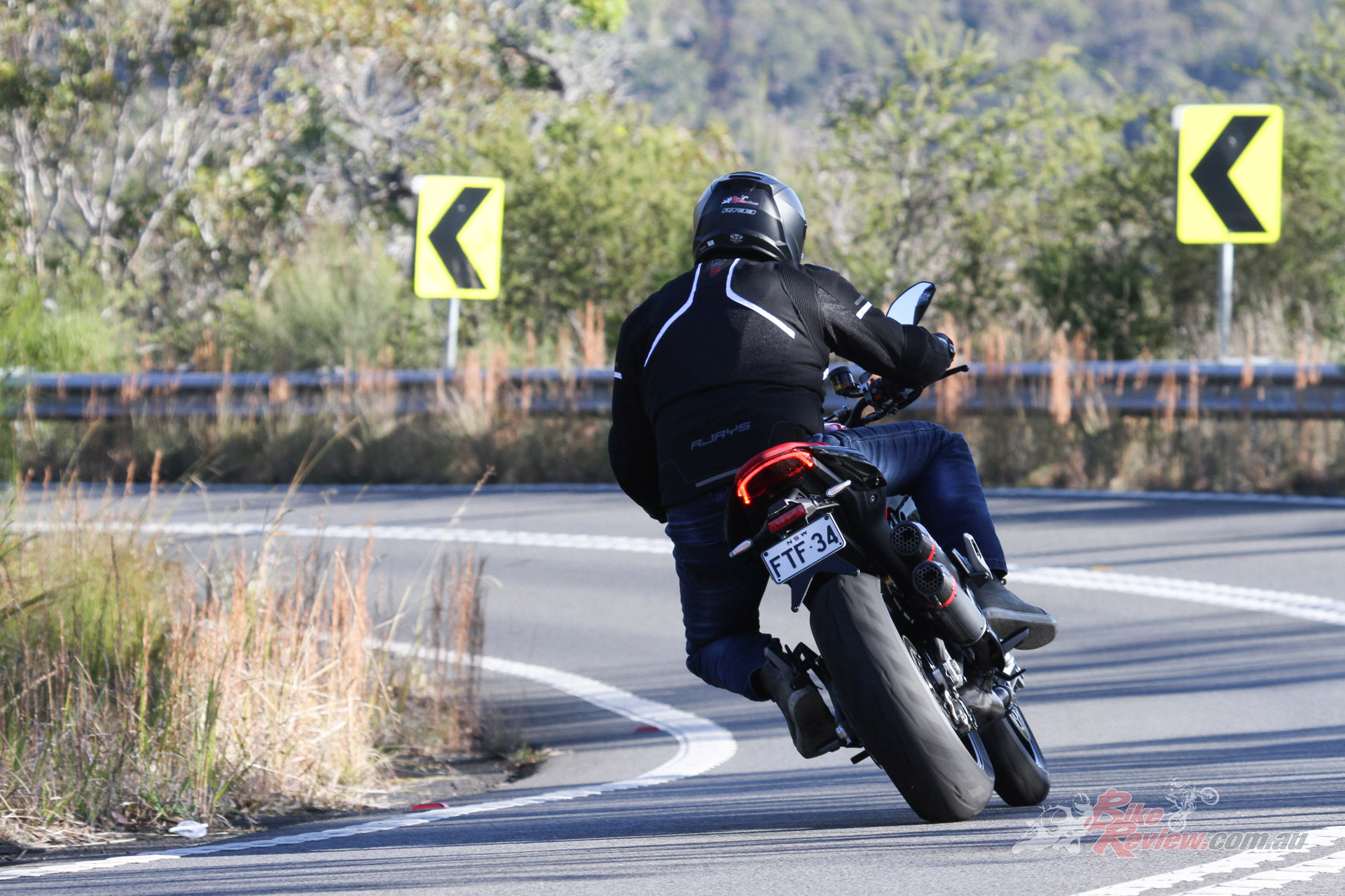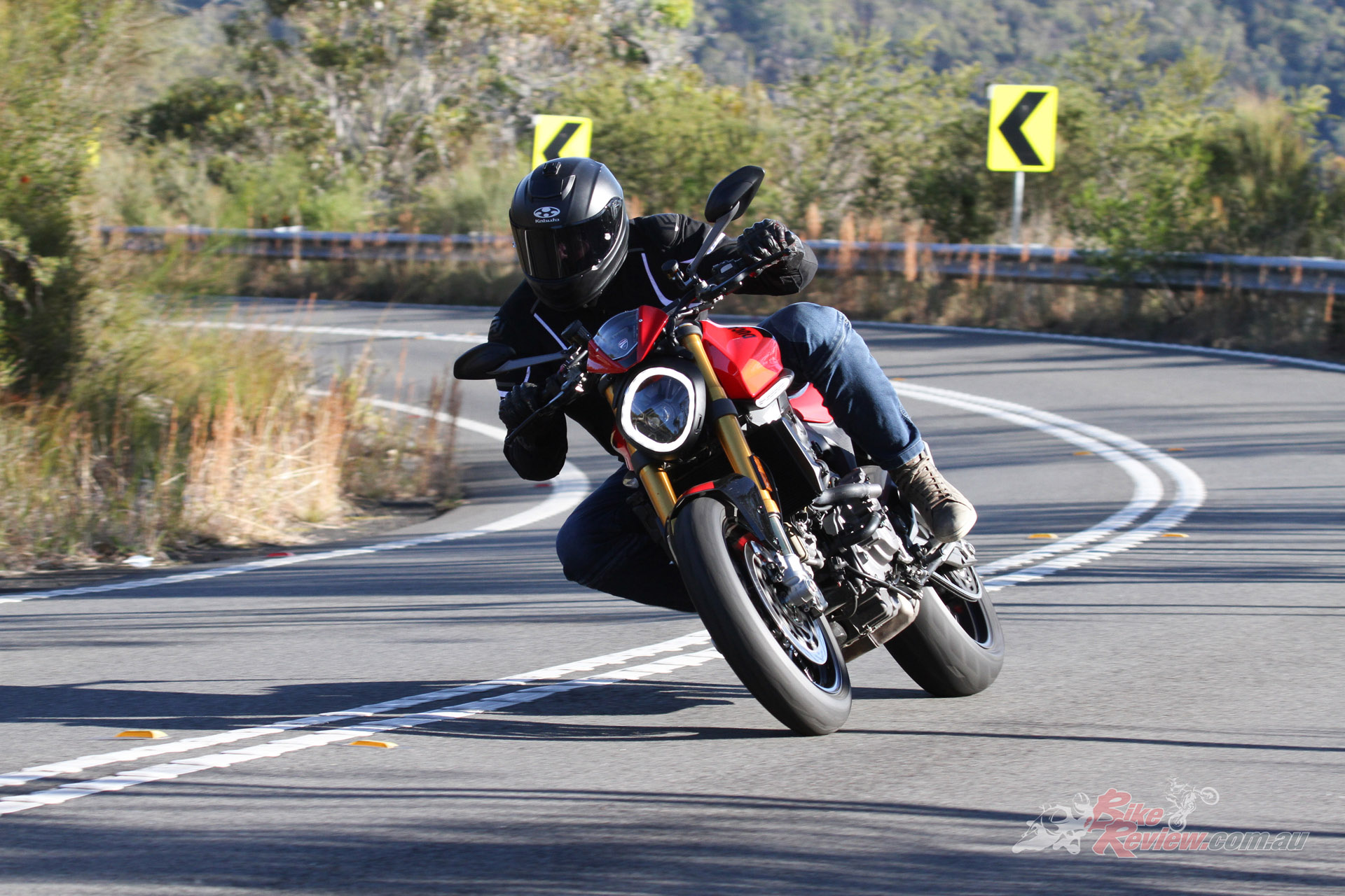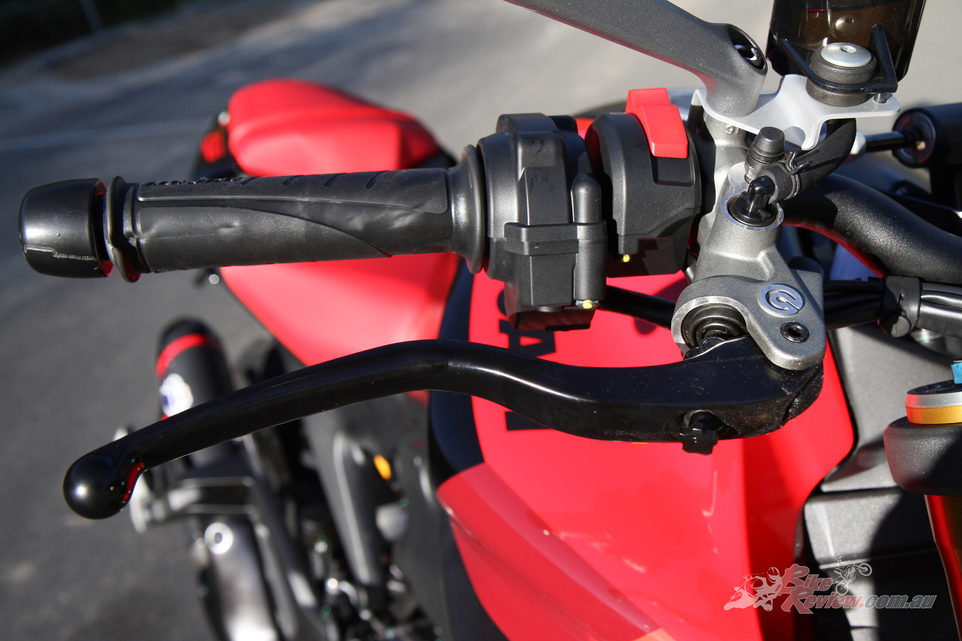 The electronics package must be good. I’m pushing hard and can’t feel any intervention from the ABS system, while on the gas out the back, the traction control obviously works very well as the DRIV is hooking up perfectly no matter how hard I punish the throttle. I love the revvy nature of the Testastretta 11º and keeping it up around the 7500 to 9000rpm range is a blast and more than enough for a quick blat on a twisty road. It feels like it has more than the 111hp it produces. Acceleration is brisk.