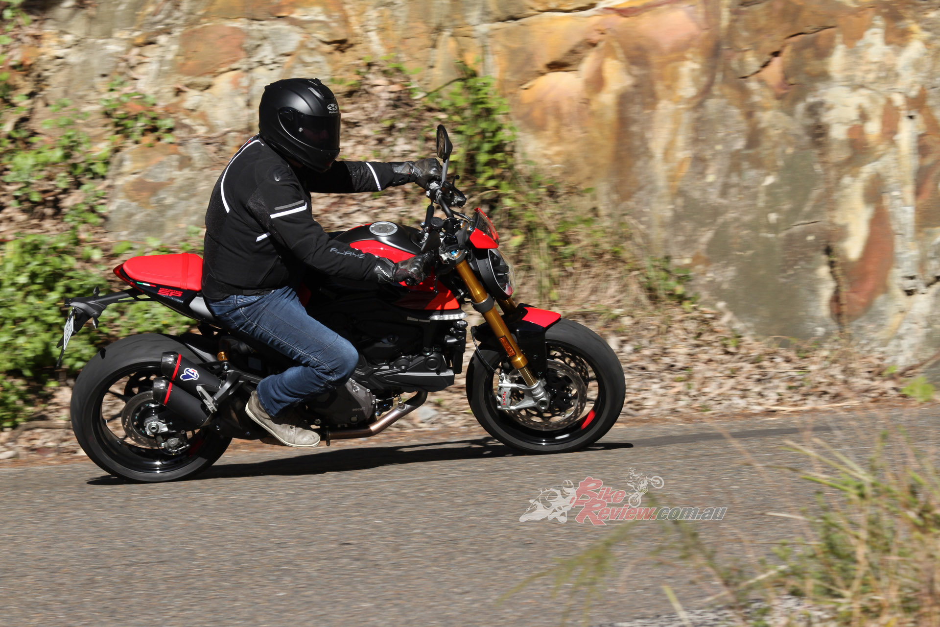 The Monster SP is in its happy place when being pushed. It balances the compromise between soft road comfort and firm support for cornering and braking really well. The harder you push, the better the Ohlins feels, to a point.