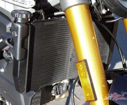 “Up at 70 and 80km/h the SP feels great. Not much wind protection from the tiny bikini fairing, but I’m comfortable.”