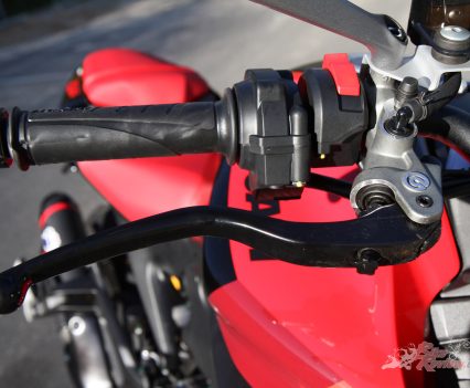 Hitting the corners is what I’m excited about. Yes, the SP is fun in town and an urban environment, which is part of what these type of nakedbikes are all about, and with the streetfighter/motard cross ride position the SP really is fun in the city, but it’s the corners that call for Brembo, Pirelli DRIV and Ohlins! I start to push and the SP makes sense. The awkward feeling as it transitions from upright to semi-lean is gone, as I transition straight past that and carry more lean angle, and the SP feels great.