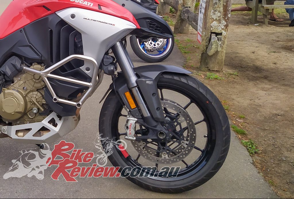 The first thing I always do when I get a new bike to test is go over it and check everything is OK: tyre pressures, levers, chain adjustment, etc. This allows me to have a good look at the bike up close to the quality of the components and the fit and finish on the Multistrada V4 S. The good news is the quality and finish are spot-on. From the paint down to the Brembo Stylema brakes, you can tell Ducati hasn’t skimped when putting the Multistrada together.