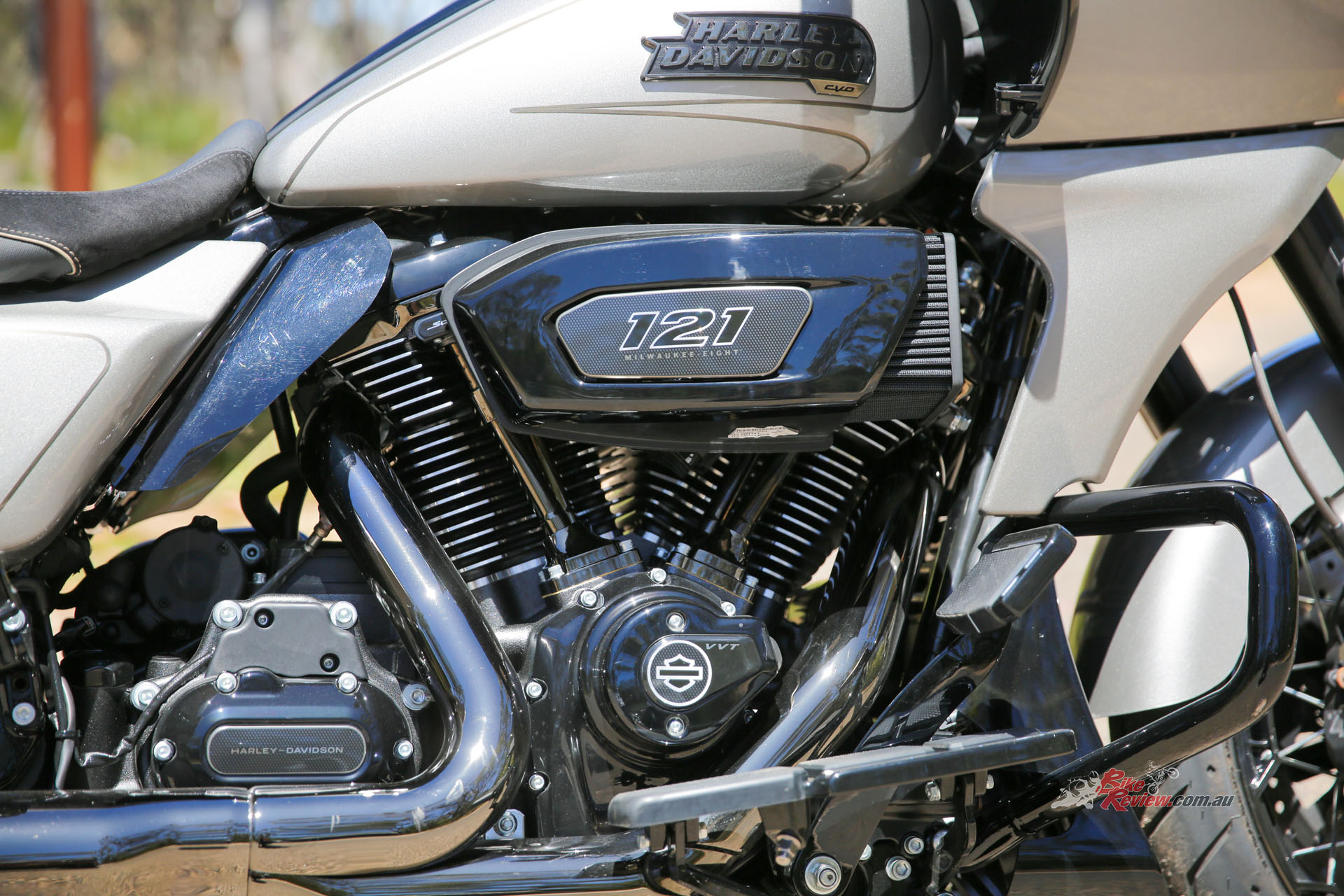 The Milwaukee-Eight VVT 121 is equipped with a number of new features, including optimised liquid-cooled cylinder heads with a new cooling system, variable valve timing (VVT), and a new intake tract. A single counter-balancer is tuned to cancel undesirable vibration.