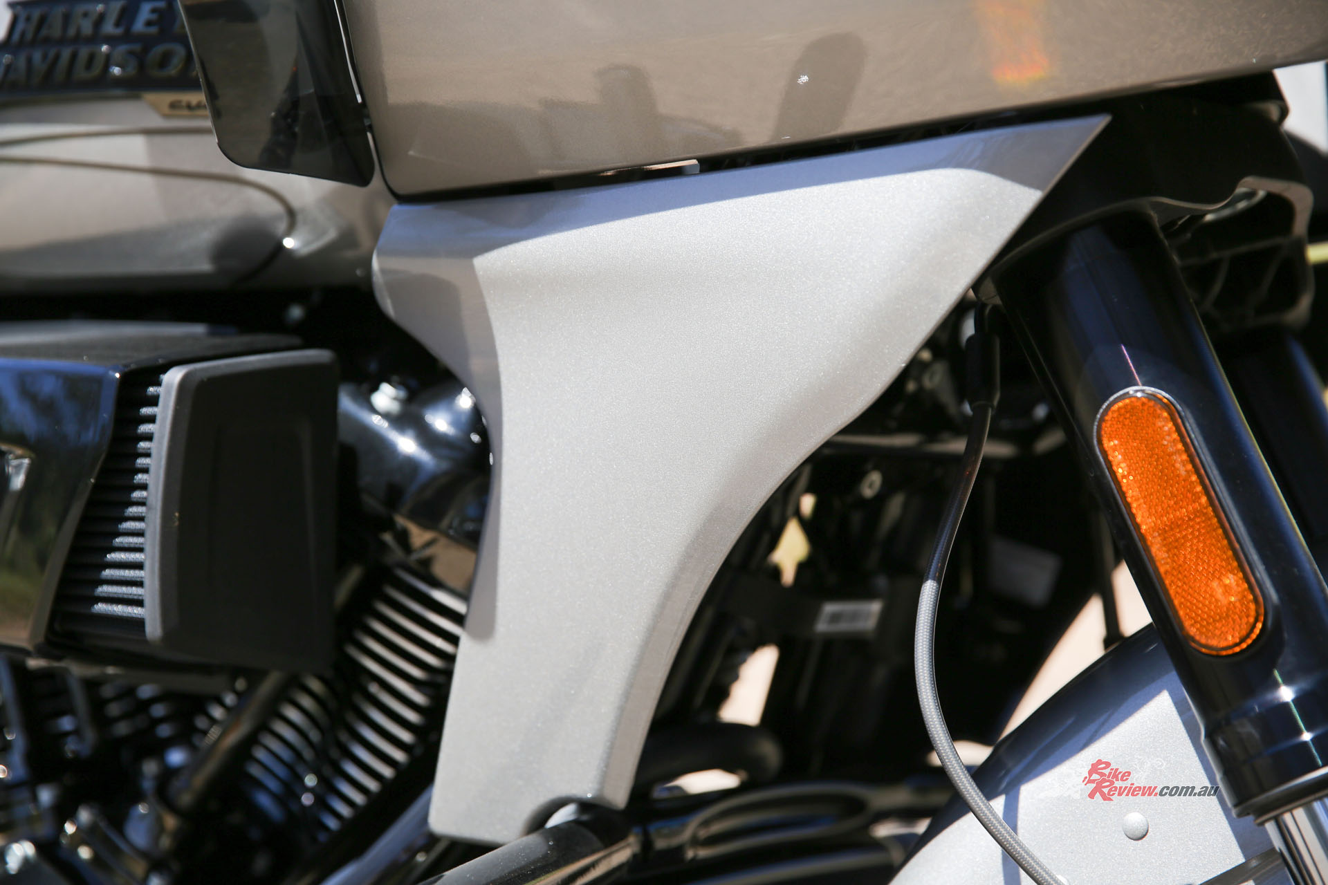 “In terms of styling, the CVO Road Glide certainly does something for me. That gorgeous frame-mounted fairing is dressed in the finest LED lights, running down to those little details like the subtle winglets and adjustable vents.”