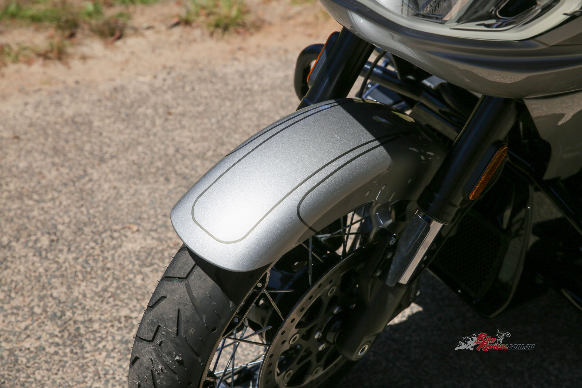 Personally, in terms of styling, the CVO Road Glide certainly does something for me. That gorgeous frame-mounted fairing is dressed in the finest LED lights, running down to those little details like the subtle winglets and adjustable vents. Grey isn’t my colour, as it always just looks like primer, but Harley-Davidson has added some flake in to make it really sparkle. The frame-mounted panniers, dark chrome exhaust, beautiful wire-spoked wheels and that gorgeous seat all tie the bike together nicely.