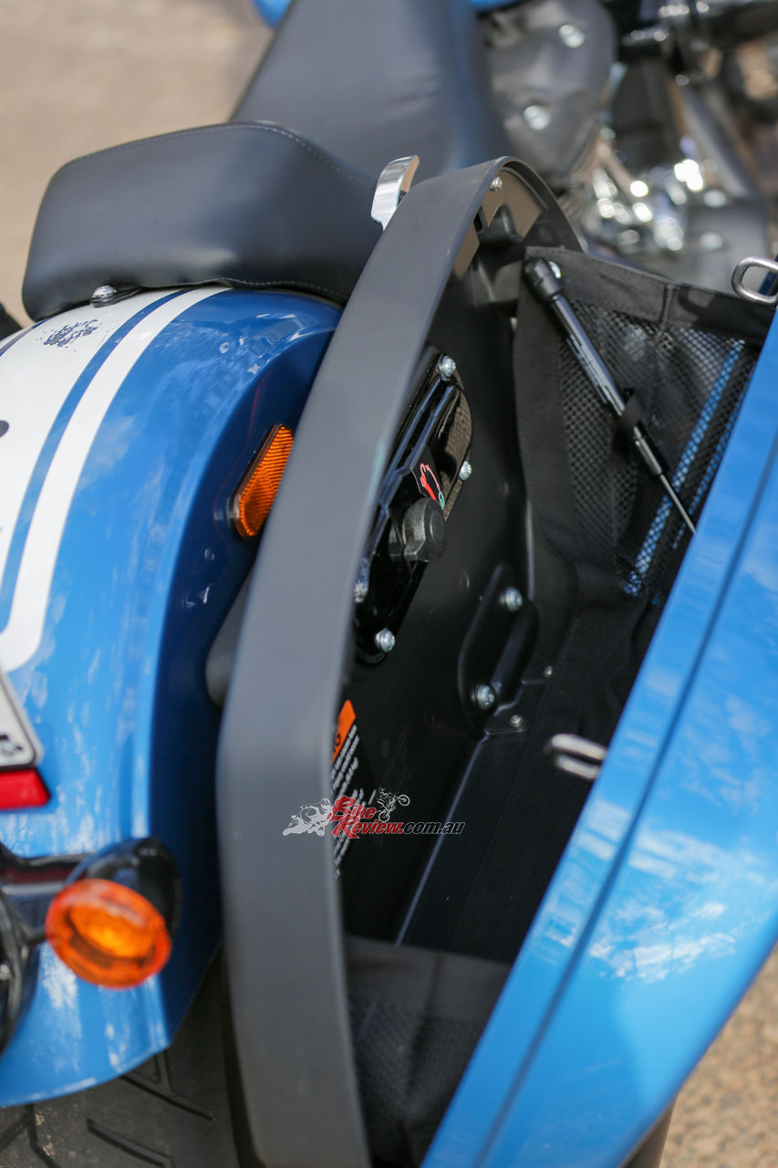 The hardcase saddlebags don’t hold a whole heap of luggage, maybe a parcel bag and a laptop. It is recommended that you use them as I found out…. The Low Rider ST has no pillion seat and your backpack will scuff up the paint if you’re carrying some heavy items. Sorry H-D Australia! I was distraught when I jumped off the bike and saw that my bag had damaged the paint on the tail.
