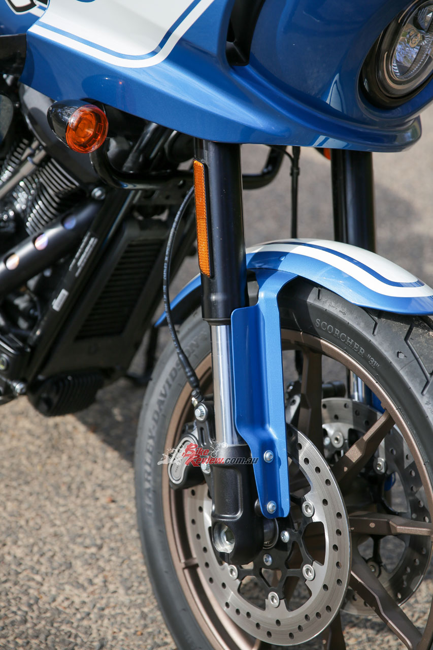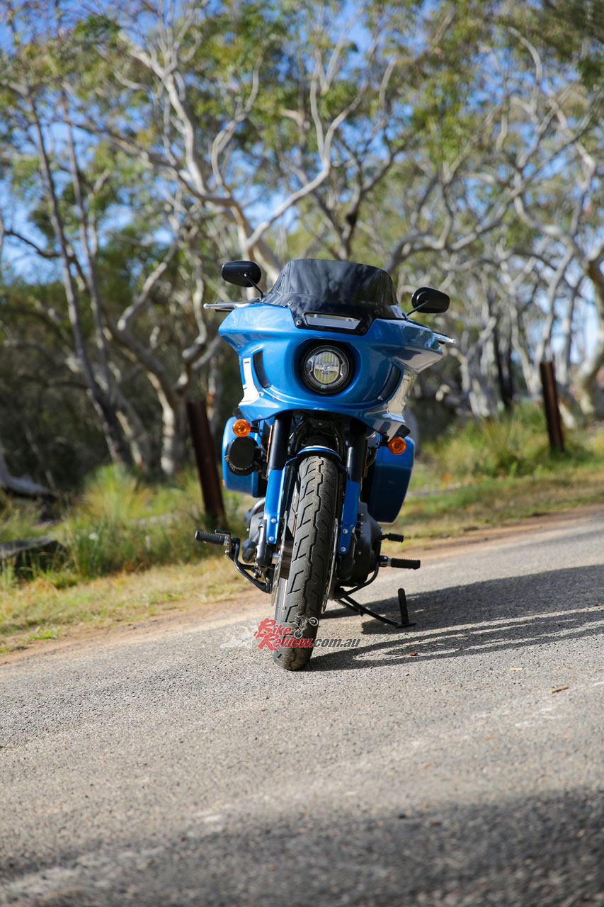 The brakes are spectacular for a Harley. Every time I throw a leg over a bike from this brand I always think “Yeah it’s fun but it needs more braking force” and they’ve answered my prayers. Two four-piston calipers grip floating rotors at the front and everything just feels perfect. The braking power, the initial bite and at no time did I feel an overwhelming amount of brake fade under heavy usage. Having brakes that work this well on a 327kg bike is something else.