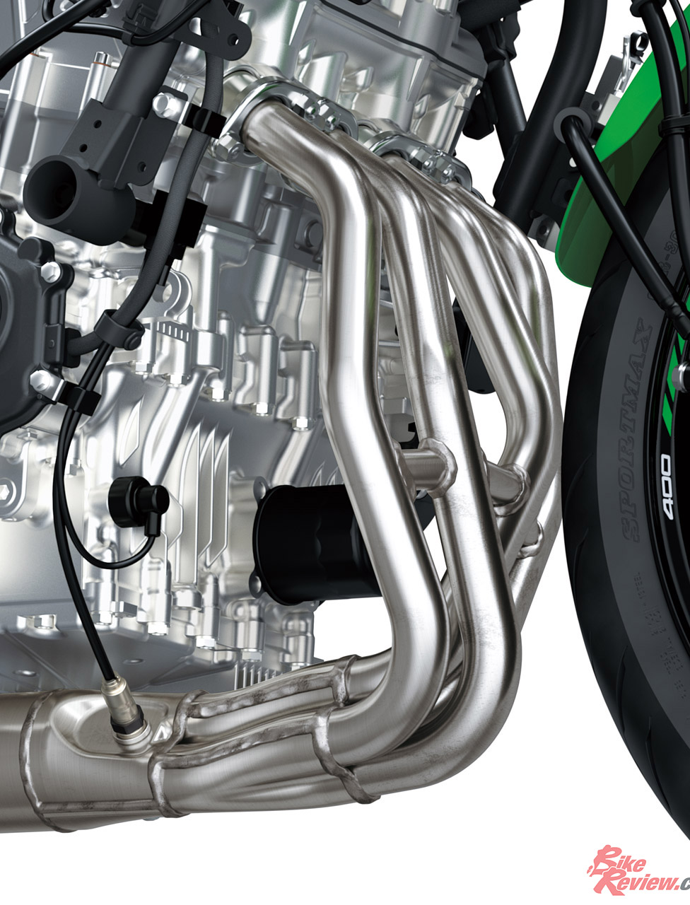 Engine: Liquid-cooled, in-line four-cylinder, four-stroke, 16-valve, DOHC, 399cc, 12.3:1 compression, 57 x 39.1mm bore x stroke, 4x34mm throttle bodies, wet sump.