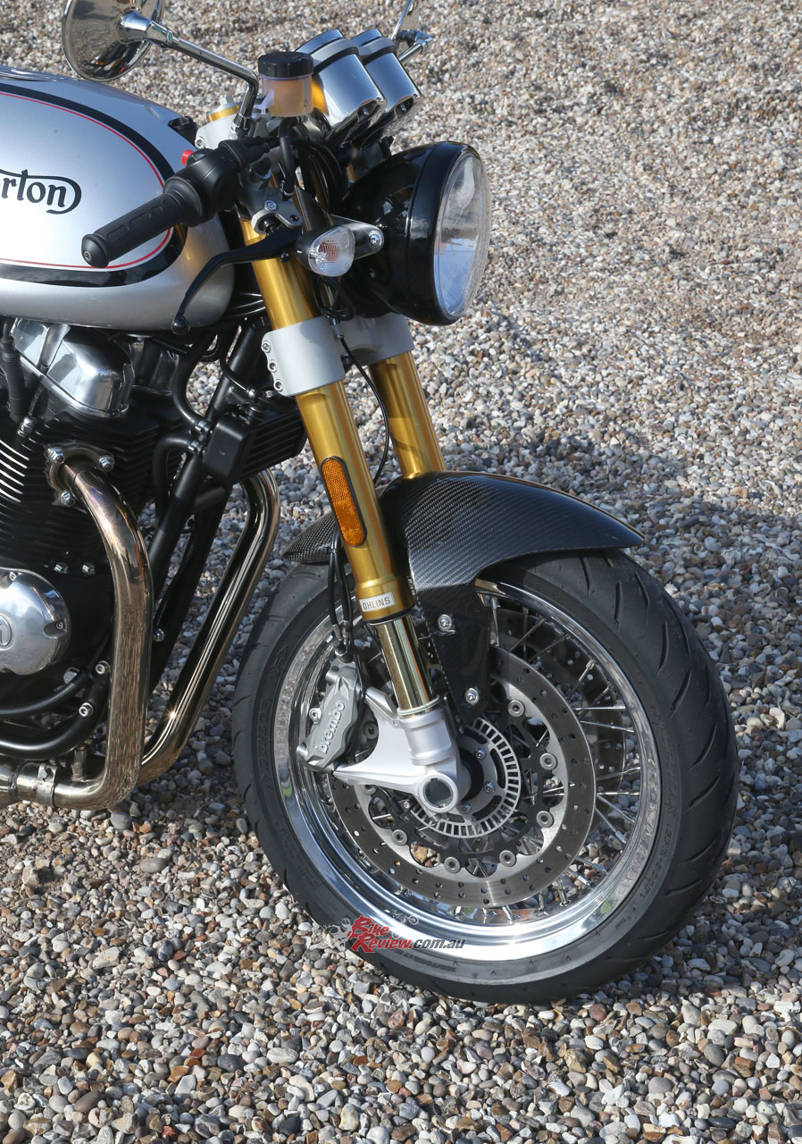 The Brembo twin-disc brake package provides controllable, effective stopping power with just the right degree of sensitivity from the radially-mounted calipers, though you can use a surprising amount of either Norton’s considerable engine braking on offer without getting the rear wheel hopping, even with that normal 1,400 rpm idle speed.