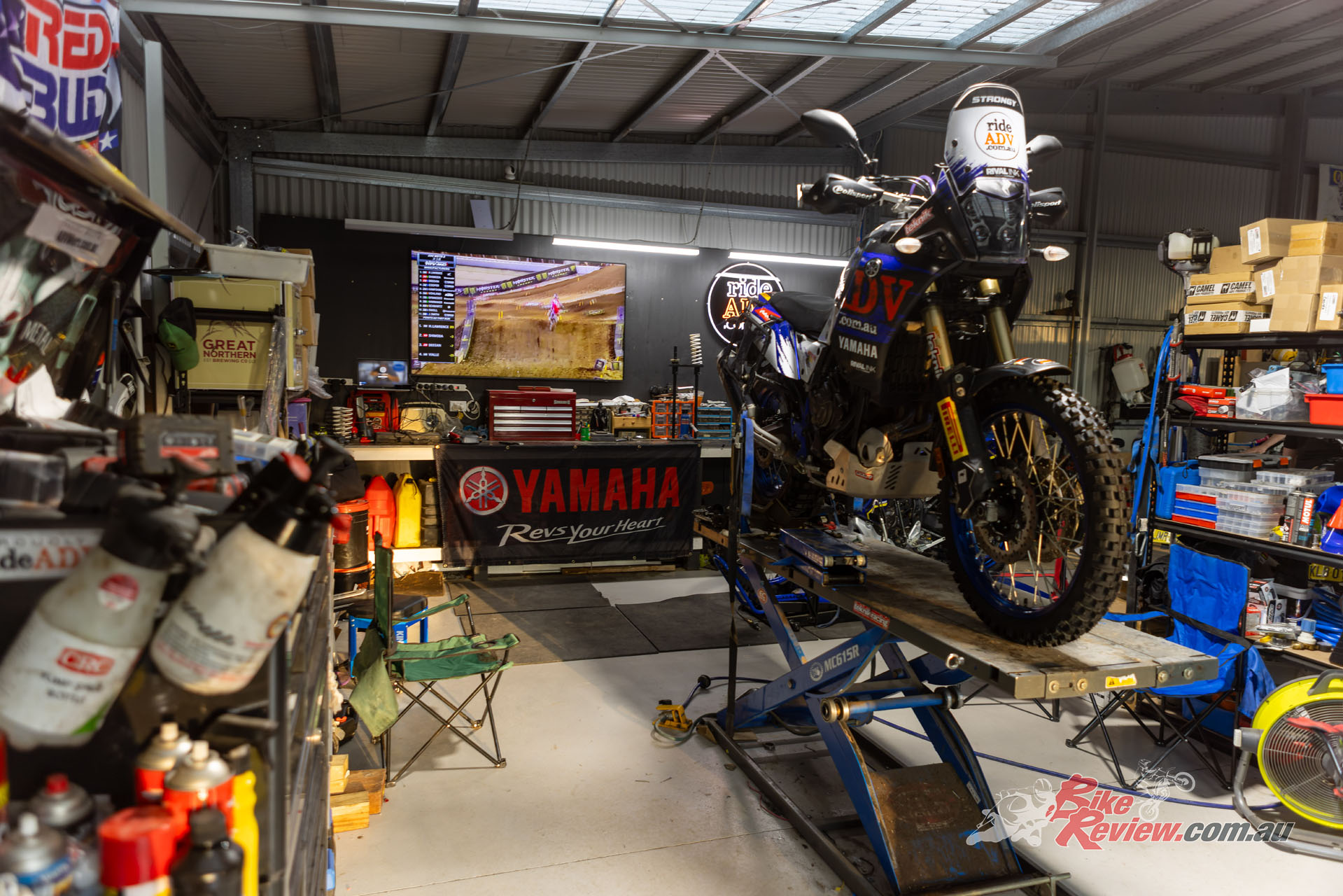 Of course, it just happened to be a 35-degree day, so we loaded our camel packs the next morning and saddled up for 200km of prime NSW trails. The only changes RideADV and Yamaha made from the standard World Raid were the tyres, swapped from the Pirelli Scorpion Rally STR to the much more motocross-inspired MST Scorpions.