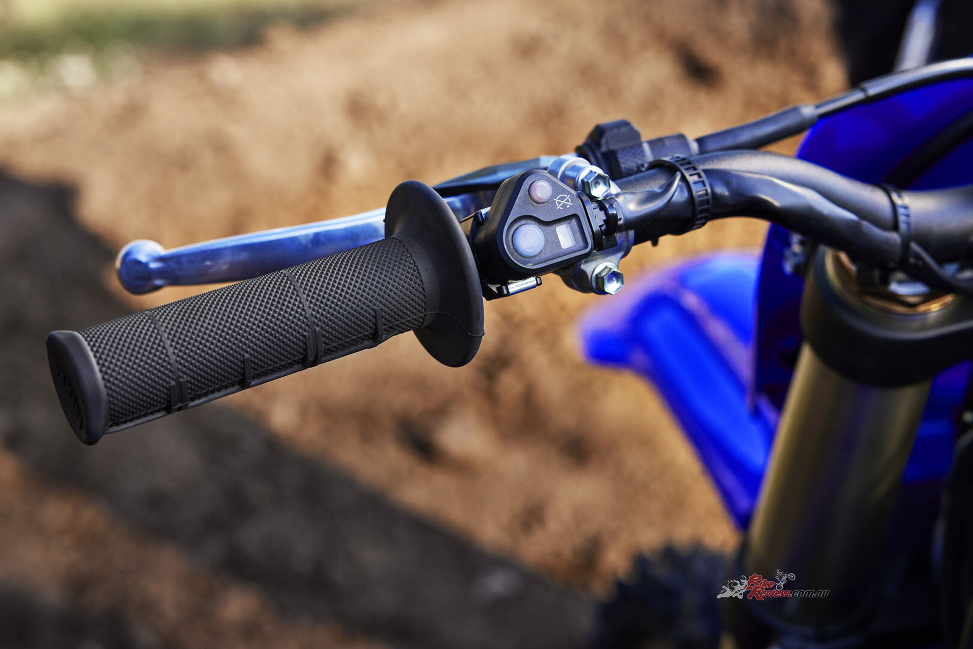 To pair with the new smartphone app, the YZ250F comes with a new handlebar-mounted switch, allowing easy map swaps while on the go. Two maps can be loaded into the bike by using the Yamaha Power Tuner app.