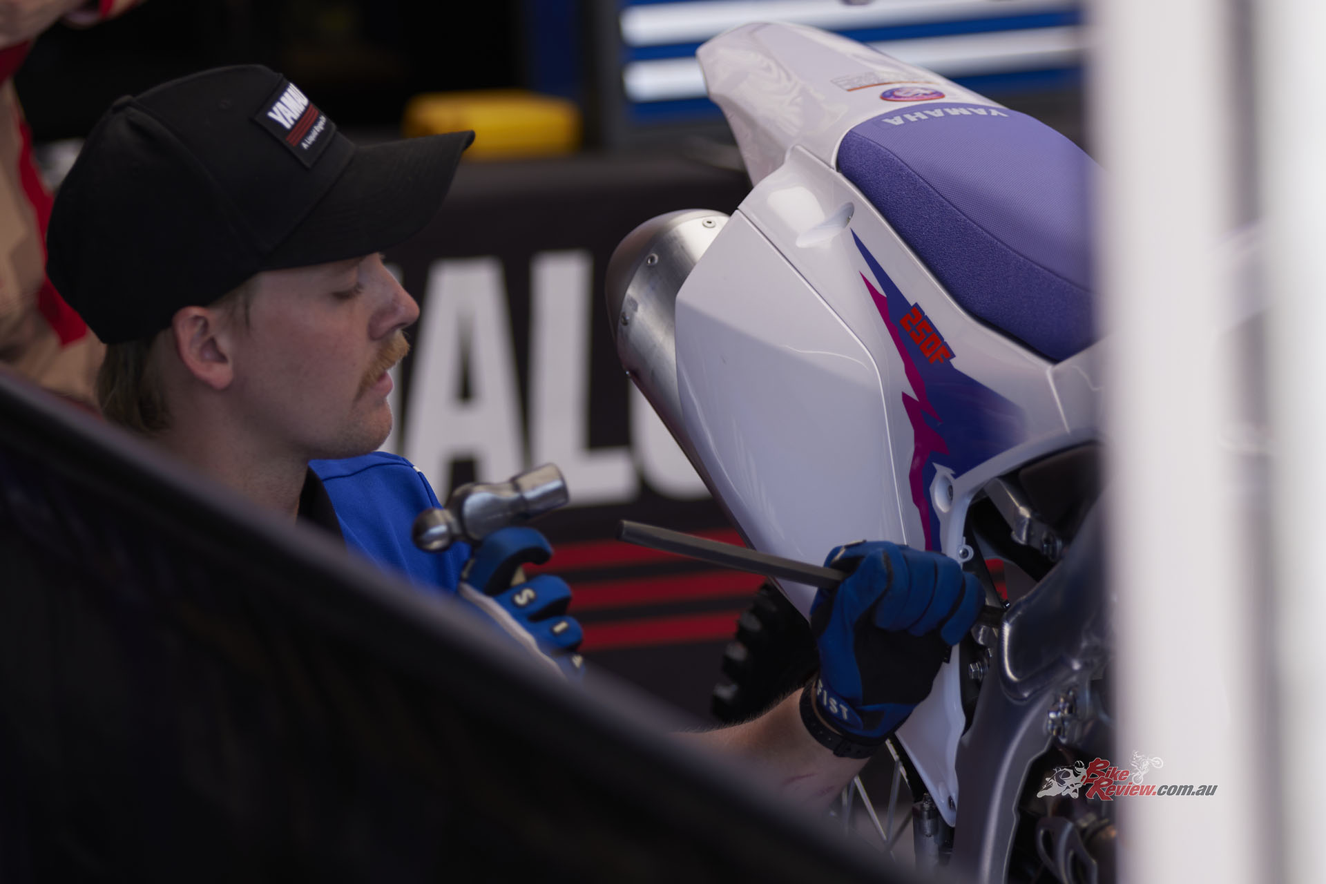 Having the mechanics at my disposal means I get the suspension and sag set my weight to give me the optimal feeling straight away. With the electronic start button working perfectly to fire up the YZ250F, it’s finally time to hit the track. The first thing I notice through the pits is that the seating position, even just at a slow pace, is extremely comfortable and makes me feel in complete control.