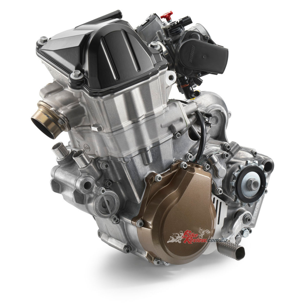 Compression is a few points below the 250 and peak rpm is 800 less at 12,000. The result is a bike with 450 power-to-weight and a 250 user-friendly nature. The engine also has the same revised shaft layouts for optimised mass centralisation and a shorter stroke for a more responsive engine, along with engine management refinements including gear specific mapping, rider switcheable maps and even a basic traction control system..