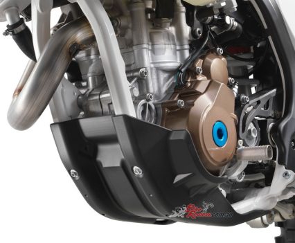 Additionally, the radiator protectors do not only protect against flying debris but also act as a brace divert any energy from an impact around the radiator and into the frame. Cooling fans are fitted on all four-stroke models standard.