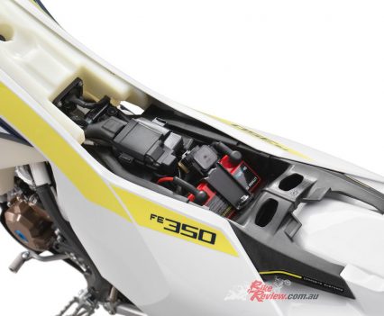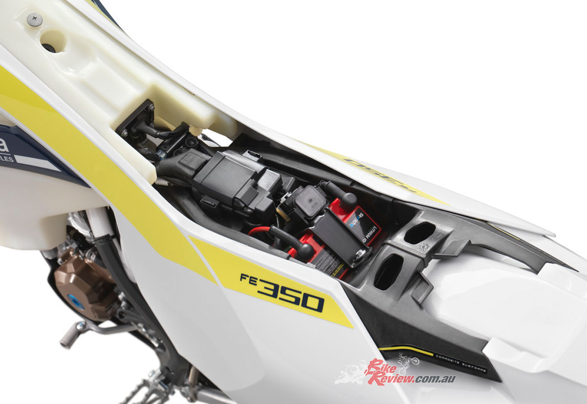 The 2017 Husqvarna FE 350 engine is designed to be more powerful, lighter and more compact than the previous model – as are the 250, 450 and 501 variants of the same engine.