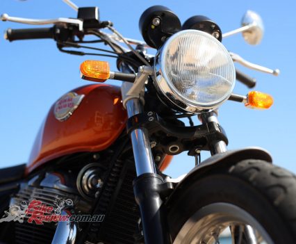 Brake feel and power is a topic of conversation at some stops. Personally, I would not want any more than what is available as I don’t think the narrow front tyre could cope. I have no trouble at all pulling the Interceptor up from stupidly high speeds into turns I don’t know, downhill, corner after corner for up to 30-minutes at a time and if that is not a test for a single rotor two-piston caliper set-up then I don’t know what is.