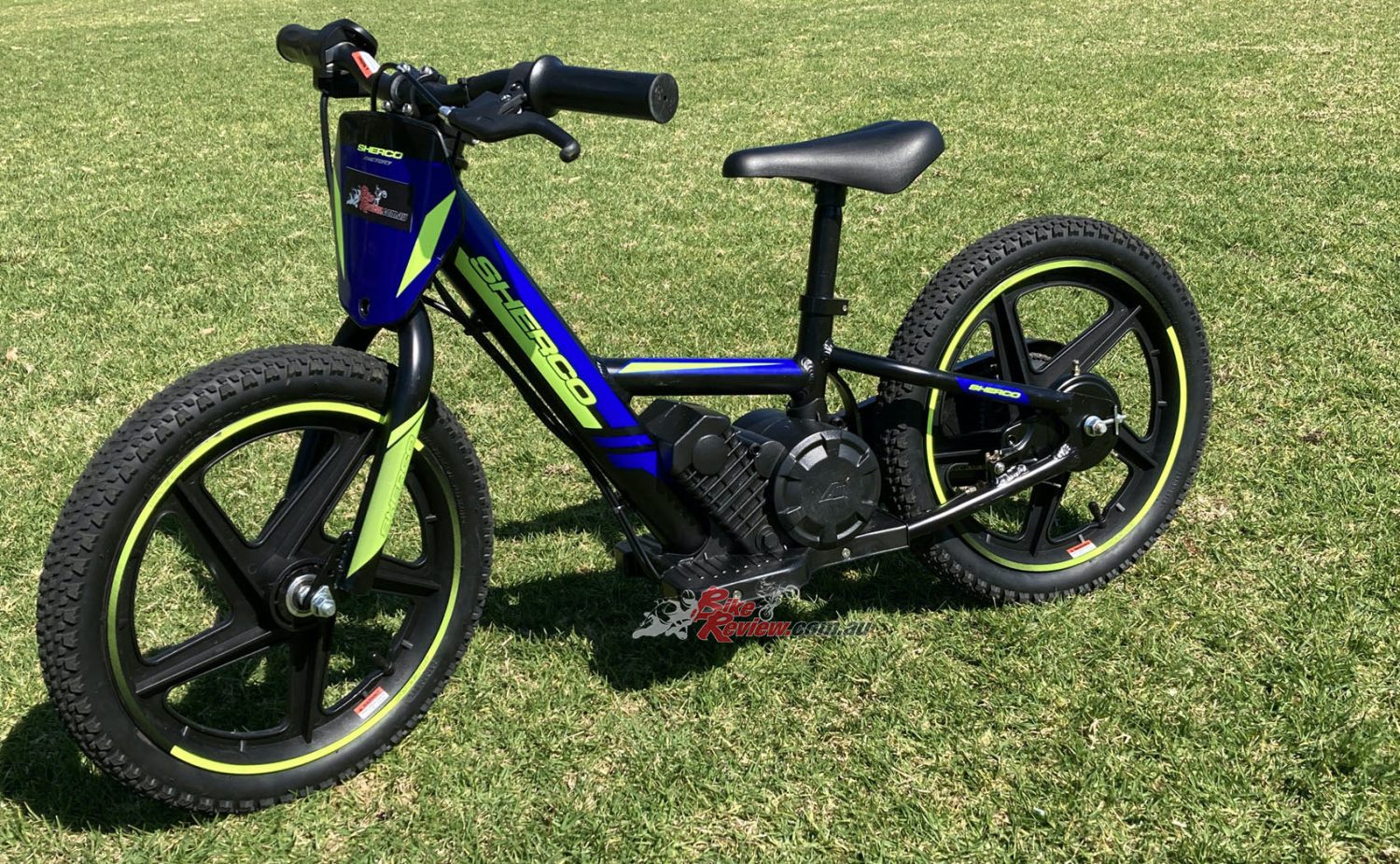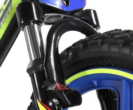 Sherco say the EB12, with its 12-inch wheels, is suitable for children between the ages of two and six, or weighing up to 34kg, with little or no experience on a balance bike. Children should have an inseam of more than 35cm to adequately touch the ground with a slight bend in the knees for optimum sizing, while the 16-inch wheeled EB16 is suitable for children between five and six years of age, or weighing up to 40kg, with some experience on a balance bike or who are taller and need a larger platform.