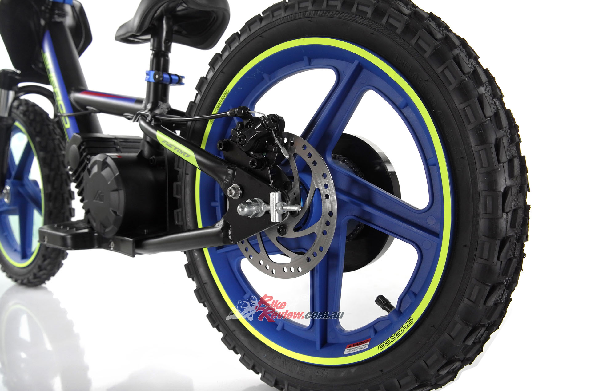 Of course, the EB16 Factory continues the fun, silent and environmentally friendly profile of its siblings, as well as a simple twist-and-go throttle, a running time of up to 60 minutes and the option of a non-powered mode for kids to push, balance and coast before activating the brushless motor.