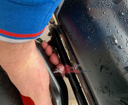 The only negative aspects of the panniers is that it is tricky to swing a leg over the bike to hop on and off. I also skinned my knuckles on more than one occasion while lifting the bike onto the centre-stand as the clearance between the pannier and the grab rail is too small. This is also a problem for pillions.