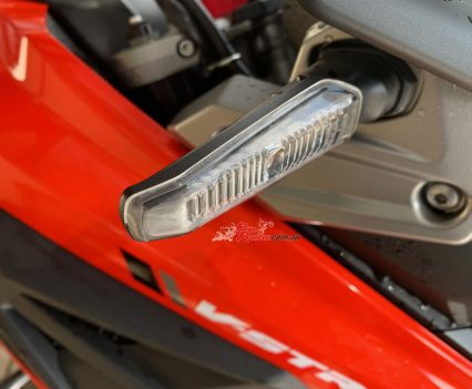 The bike had Pirelli Scorpion STR tyres, which are great on tarmac but offer that bit extra off road, meaning I was able to venture into the bush tracks and spend a fair bit of time roaming around the State forests near home, plus enjoy a few days riding West of Sydney (see the Video Review). The styling is the big standout feature, with Dr-Big looks, particularly the large front ‘beak’.