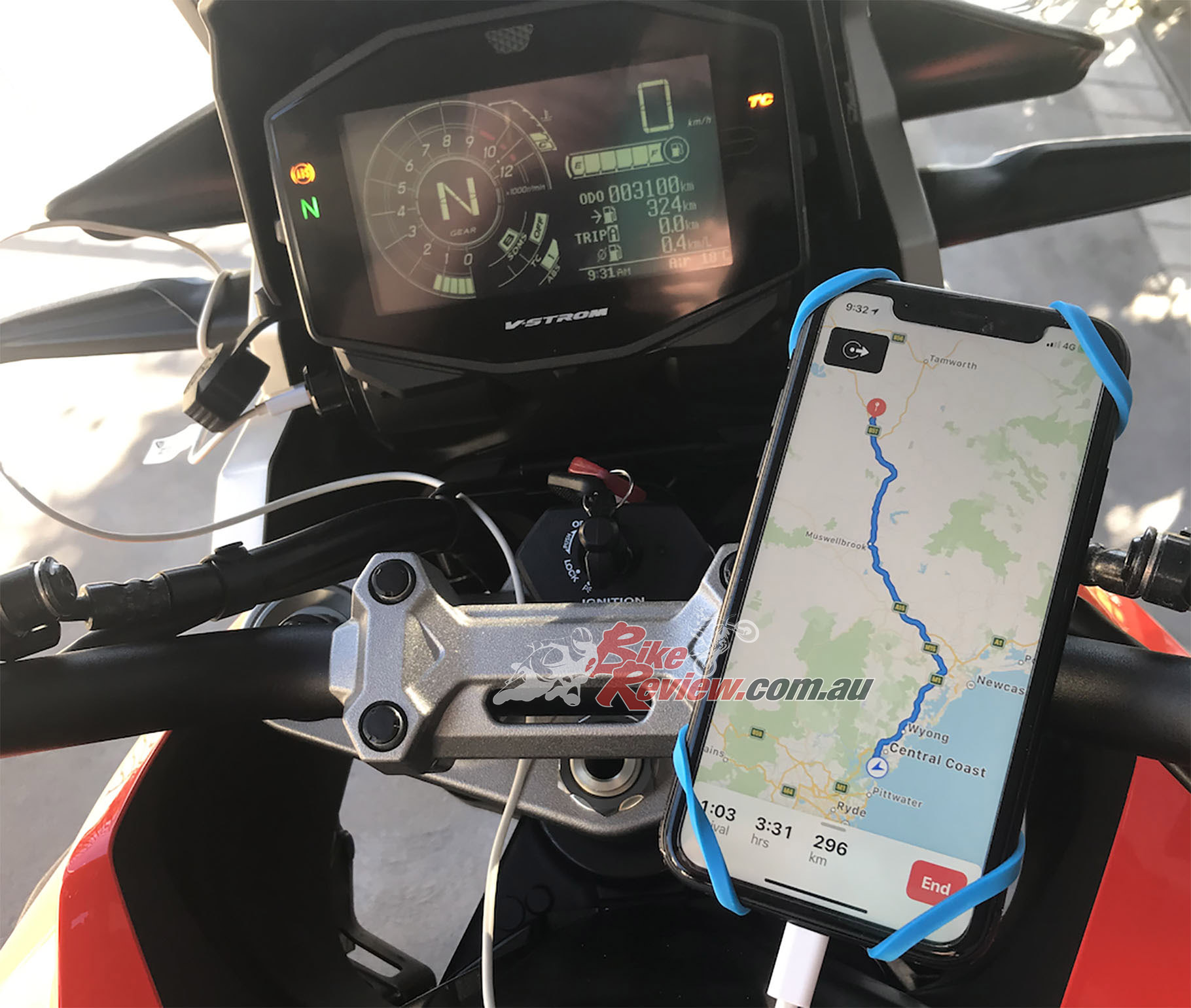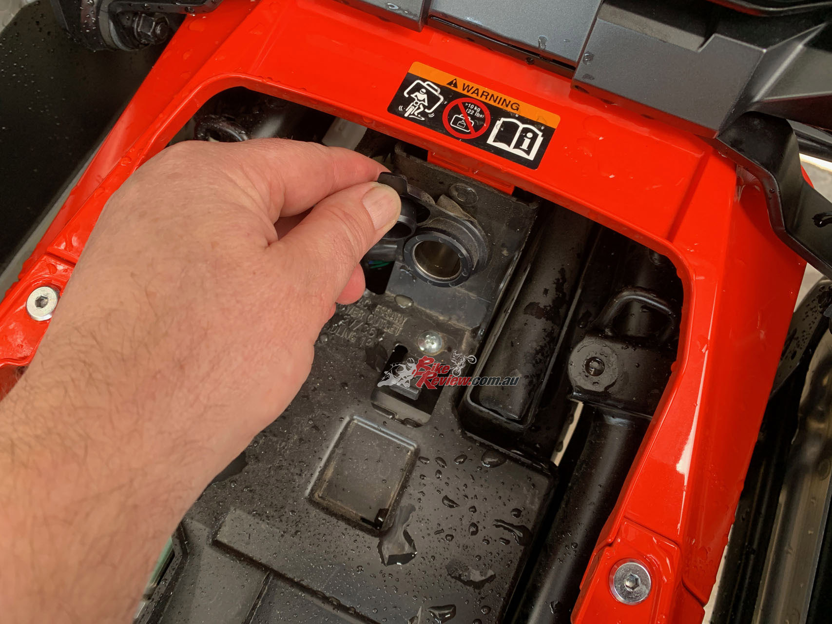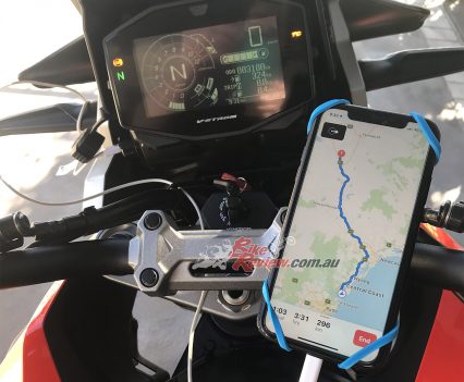 There are 12V charge points at both ends, as mentioned, one at the front but there is also one under the pillion seat. This was handy when the pillion in a million and I went riding, she could charge her phone off the back one while I used the front. Pretty handy… Speaking of two-up riding and touring, I got 19km/L at one point from the 20L with over 380km before I stopped for a top up.