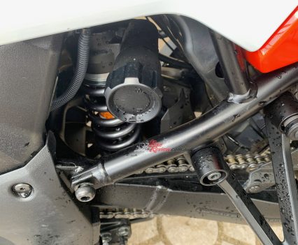 On the smoother roads when you really start pushing hard, it pays to add a little front spring and comp and some rear spring and rebound, which helps settle the bike. It’s not 100 per cent necessary, and I’m talking when really pushing on, but it does make the chassis a bit more of a neater package once there is some grip – and you will be surprised how much road grip the Pirelli’s give. Incredible.