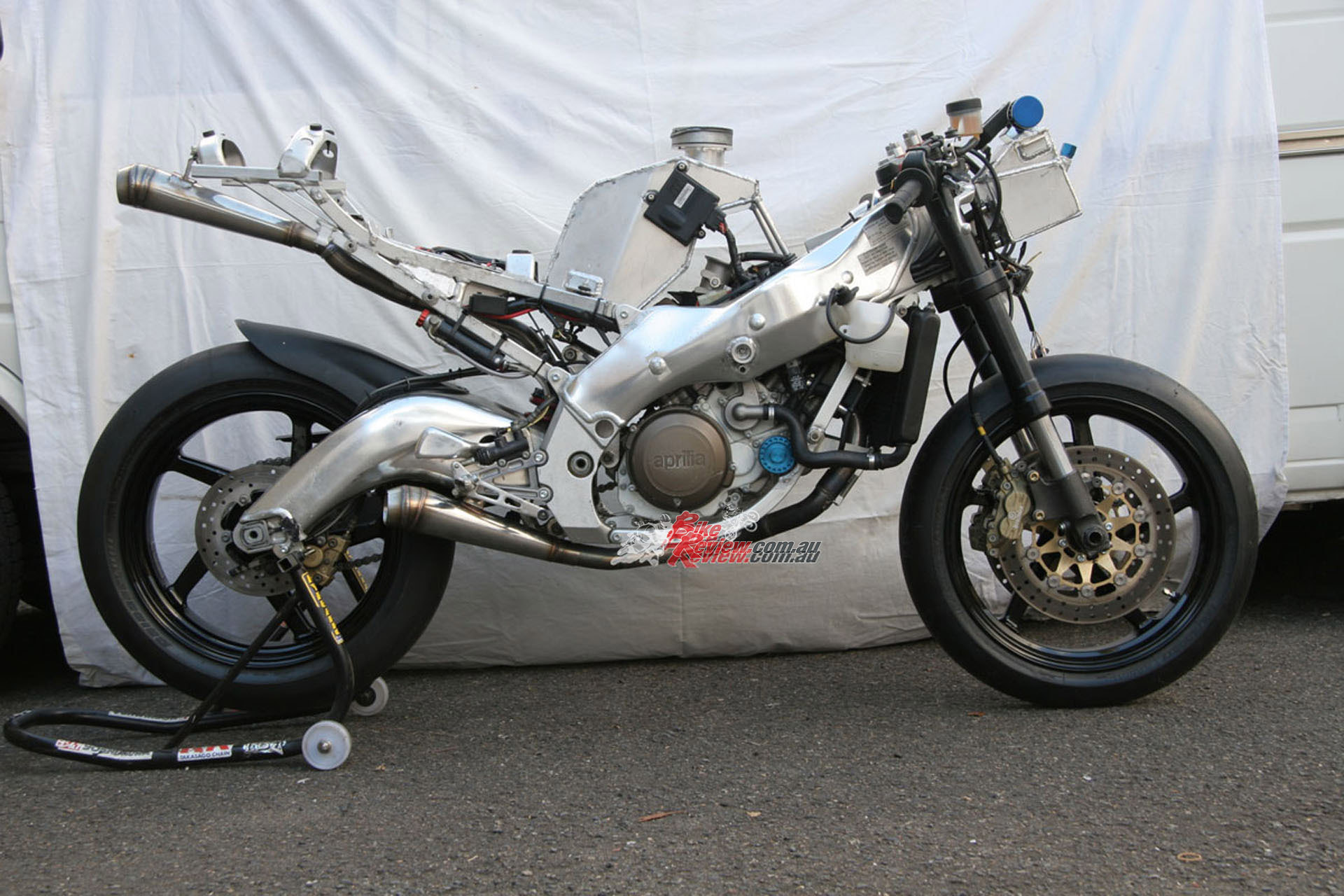 That RSX550 was really well know here in Australia, as nobody had seen anything like it for a long time, Moto2 was only a concept, and lots of people wished Aprilia would build something similar at the time. It was a difficult job to get right, particularly engine position and swingarm pivot/output shaft position and so forth but with the help of Ben Shaw and Dave Ward, we did it.