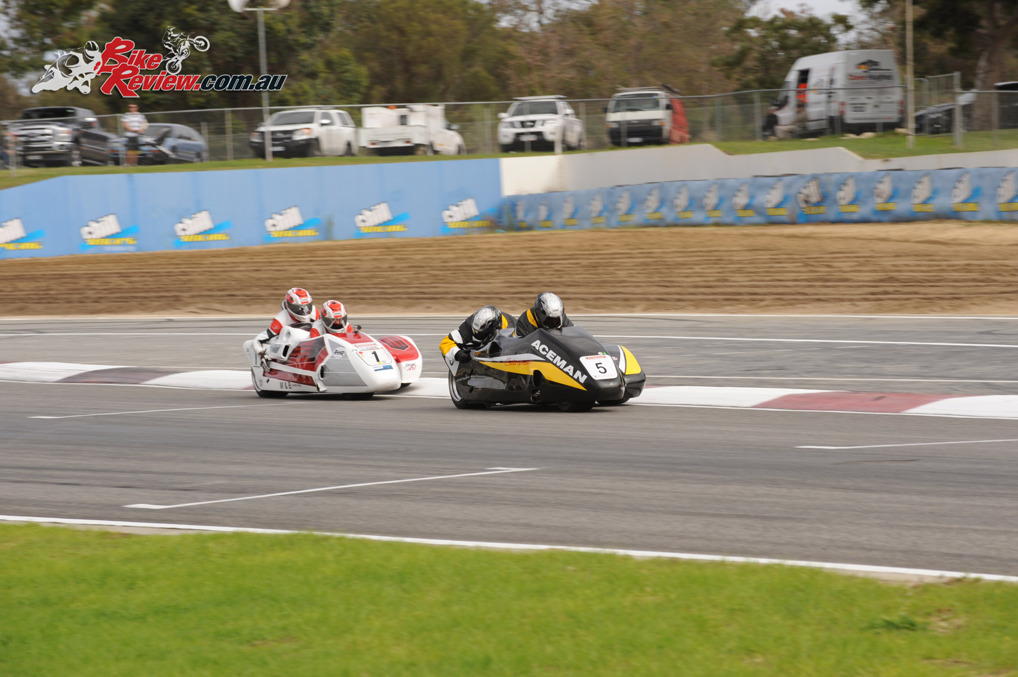 ROUND 1 WA STATE ROAD RACING Murray Stronach-Steve Marshall lead Jero Joyce-Corey BlackmanCoded Welding Sidecar Championship