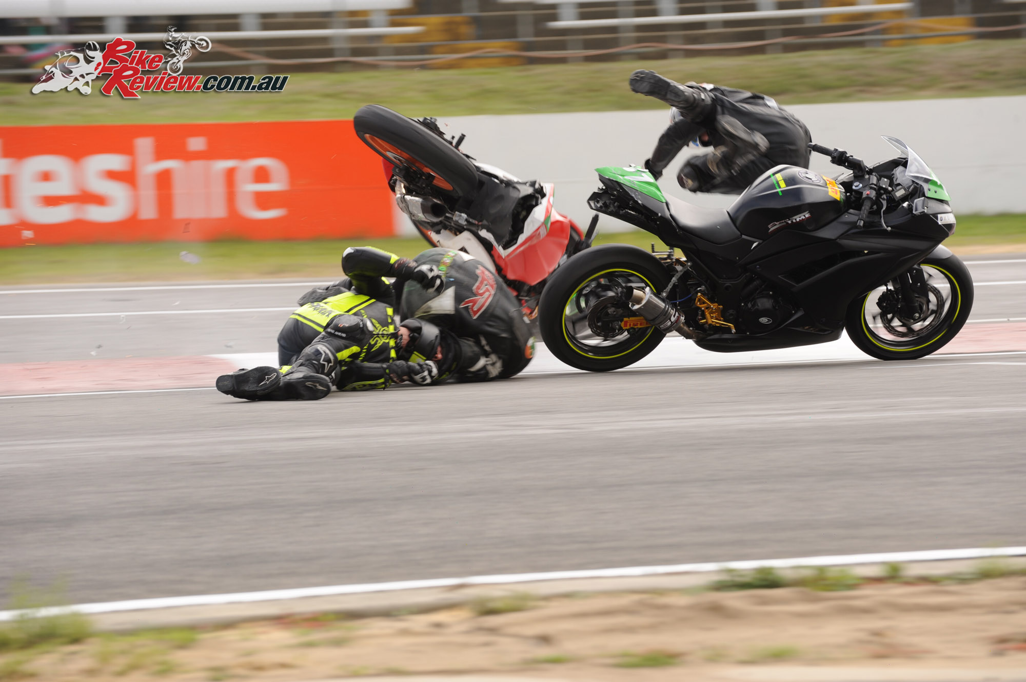 Ben Stronach (Swift Windscreens Kawasaki ZX-10) took the win in the race which was ‘red flagged’ following the crash and was “declared” following the lengthy delay. Ralph Mammoliti (Trakdayz Kawasaki ZX-10) was second with Adam Senior (Consent 2 Go Yamaha R1) third. Adam Chambers (Kawasaki ZX -10) rounded out the top five. Half points were allotted to this race as the lead riders only completed five laps.