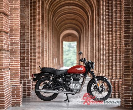 The Bullet 350 comes in five new colours, Black Gold, Standard Black, Standard Maroon, Military Black, Military Red. Pricing and availability in Australia was yet to be announced as we published.