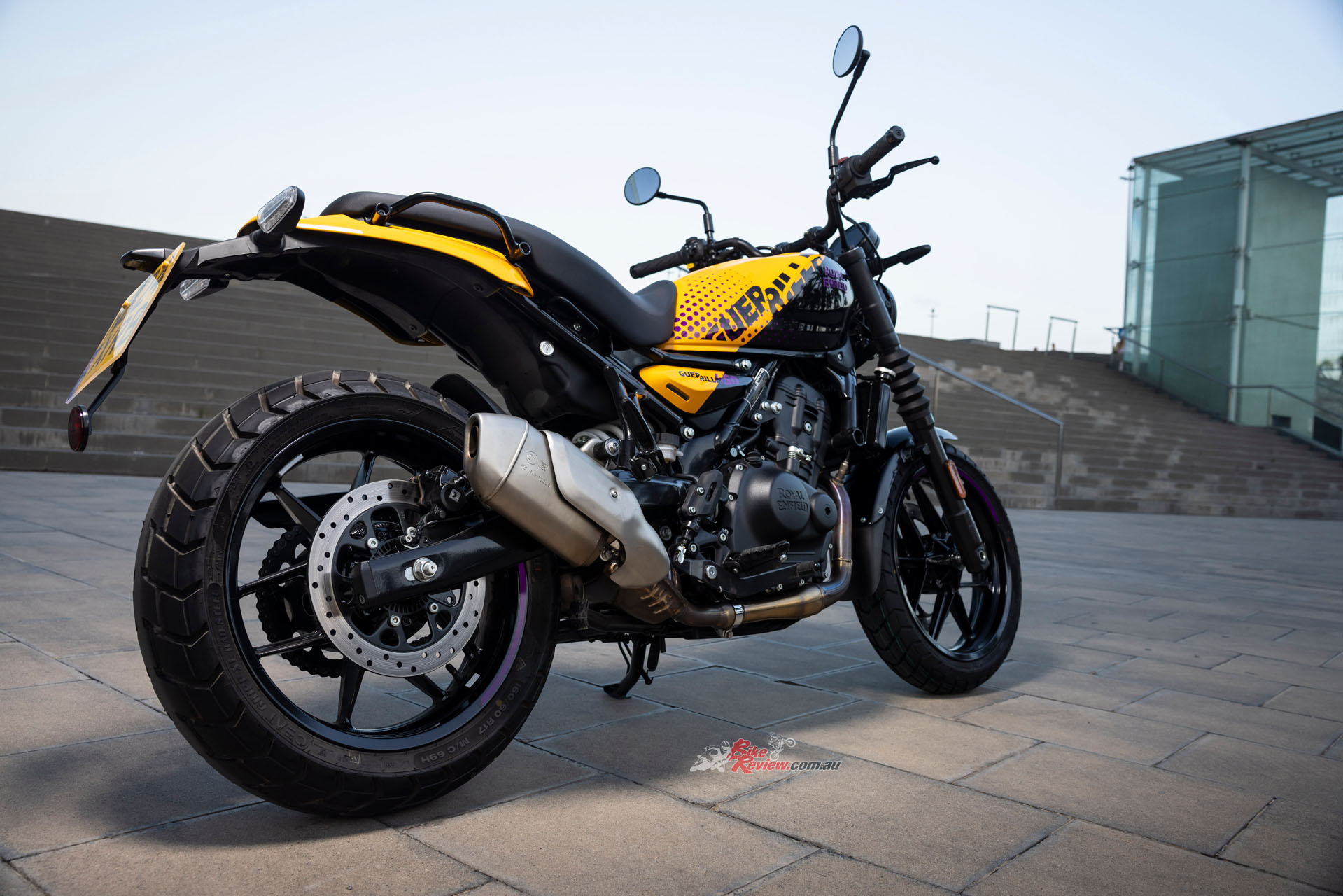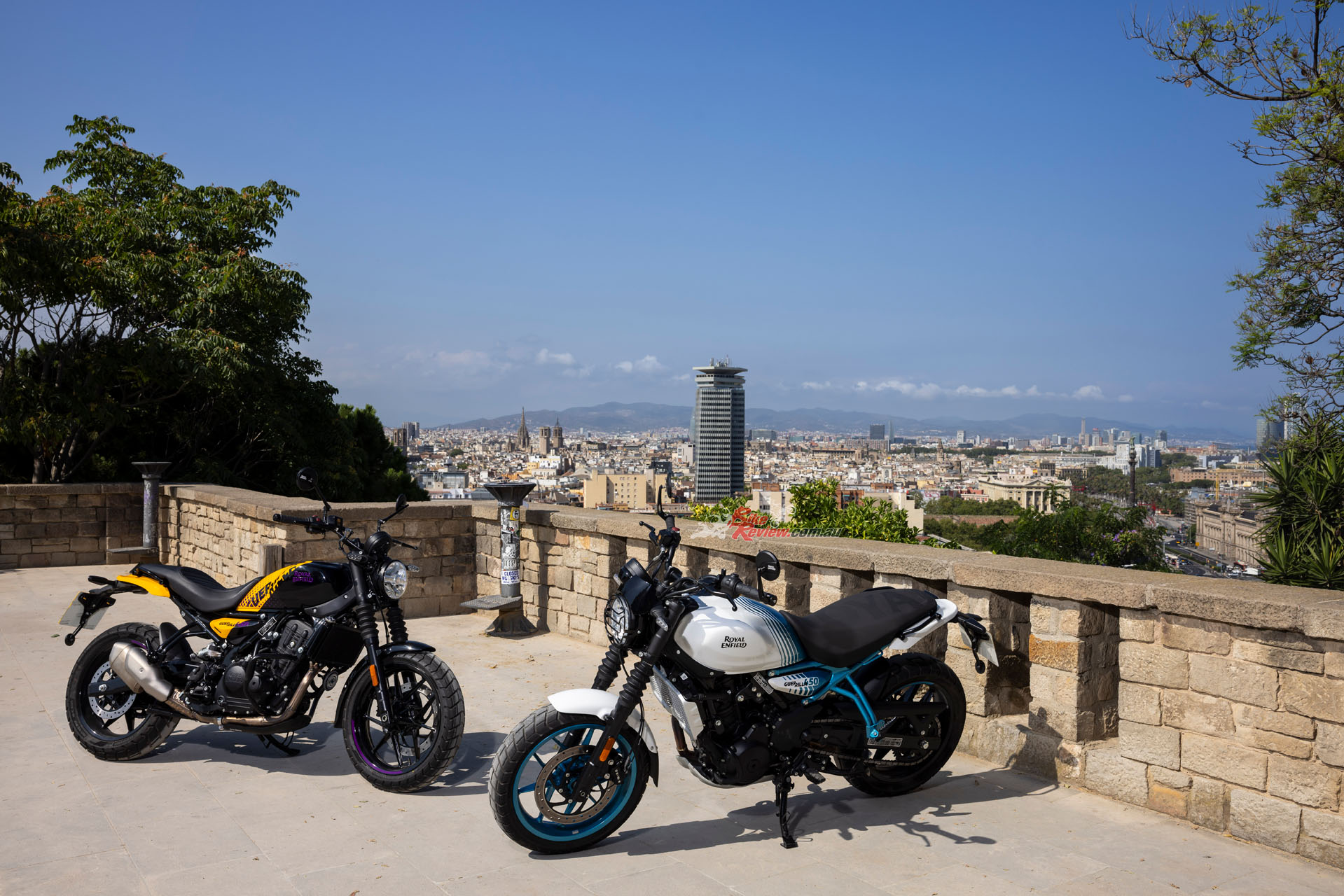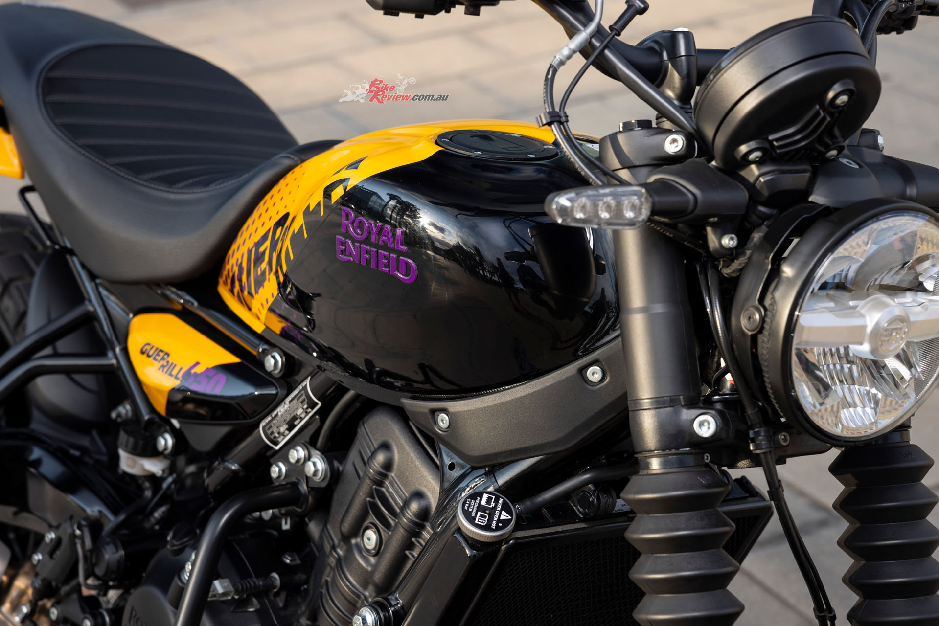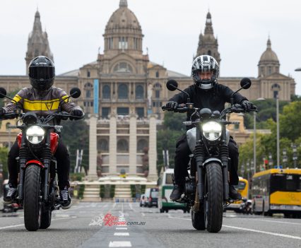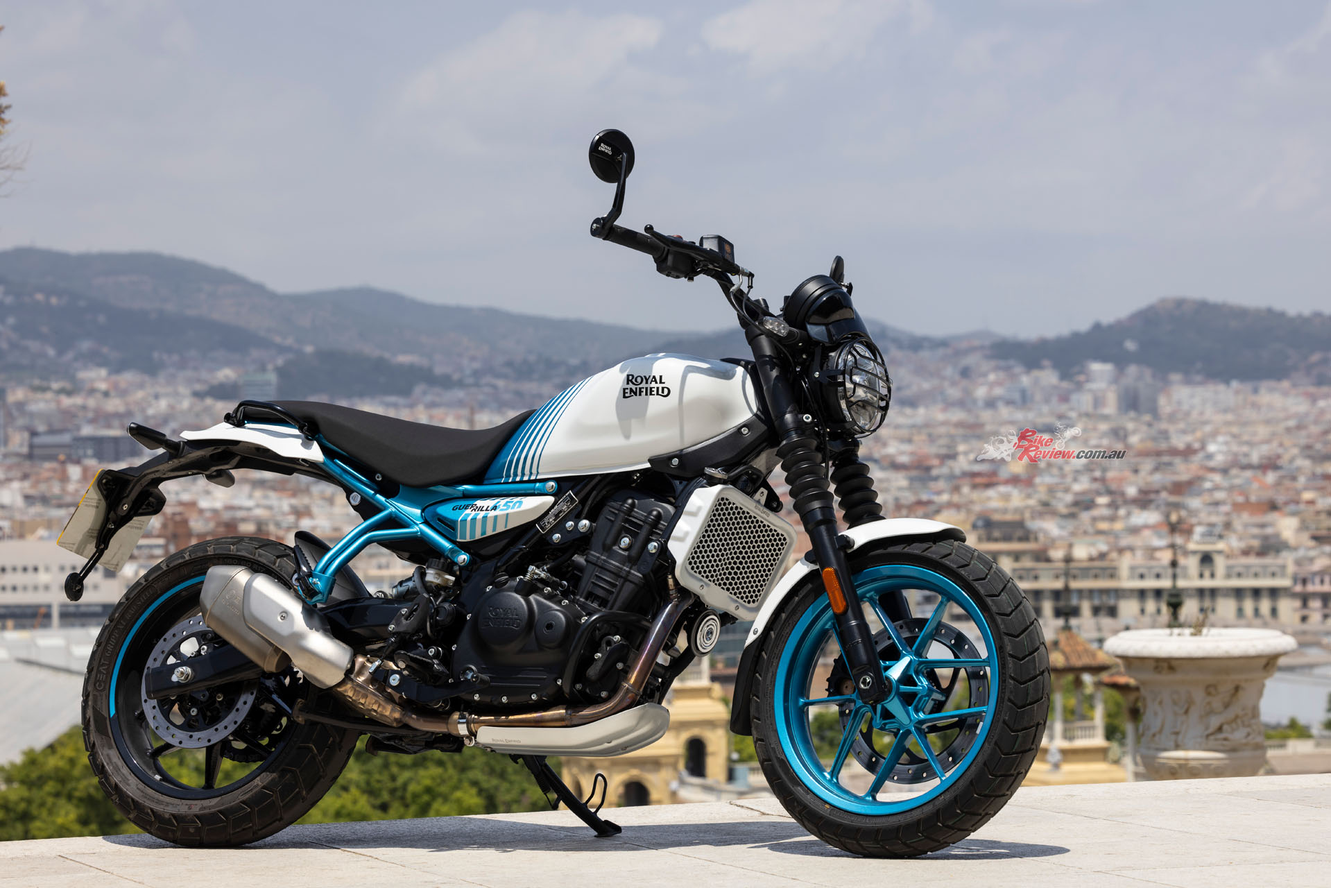 Royal Enfield unveiled the new Guerrilla 450 in Barcelona yesterday and BikeReview were there, with Andrew Jenkin on the ground to check out the new single and take it for a 9-hour ride around Barcelona and surrounds. Check out the full tech spec’s and our gallery…