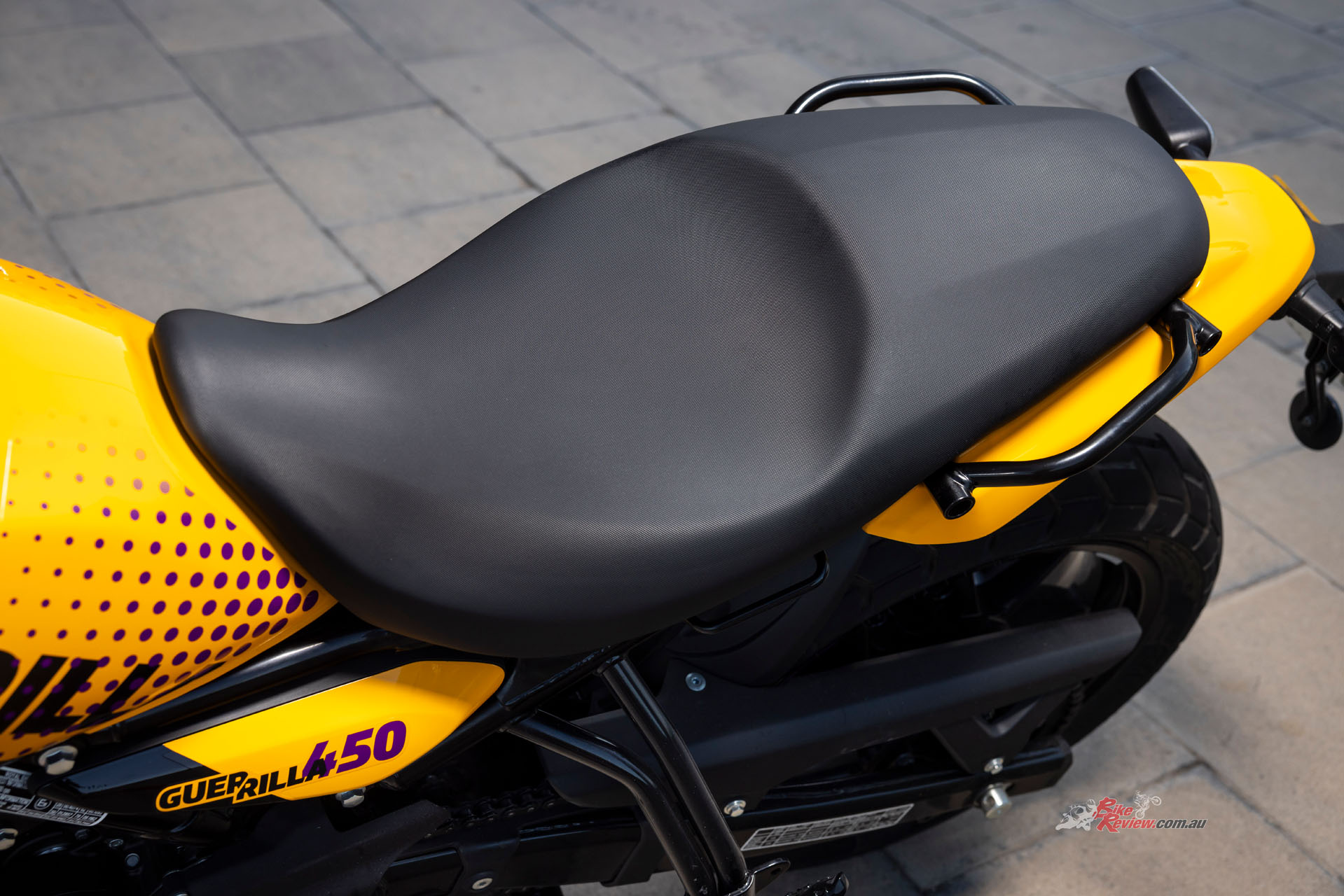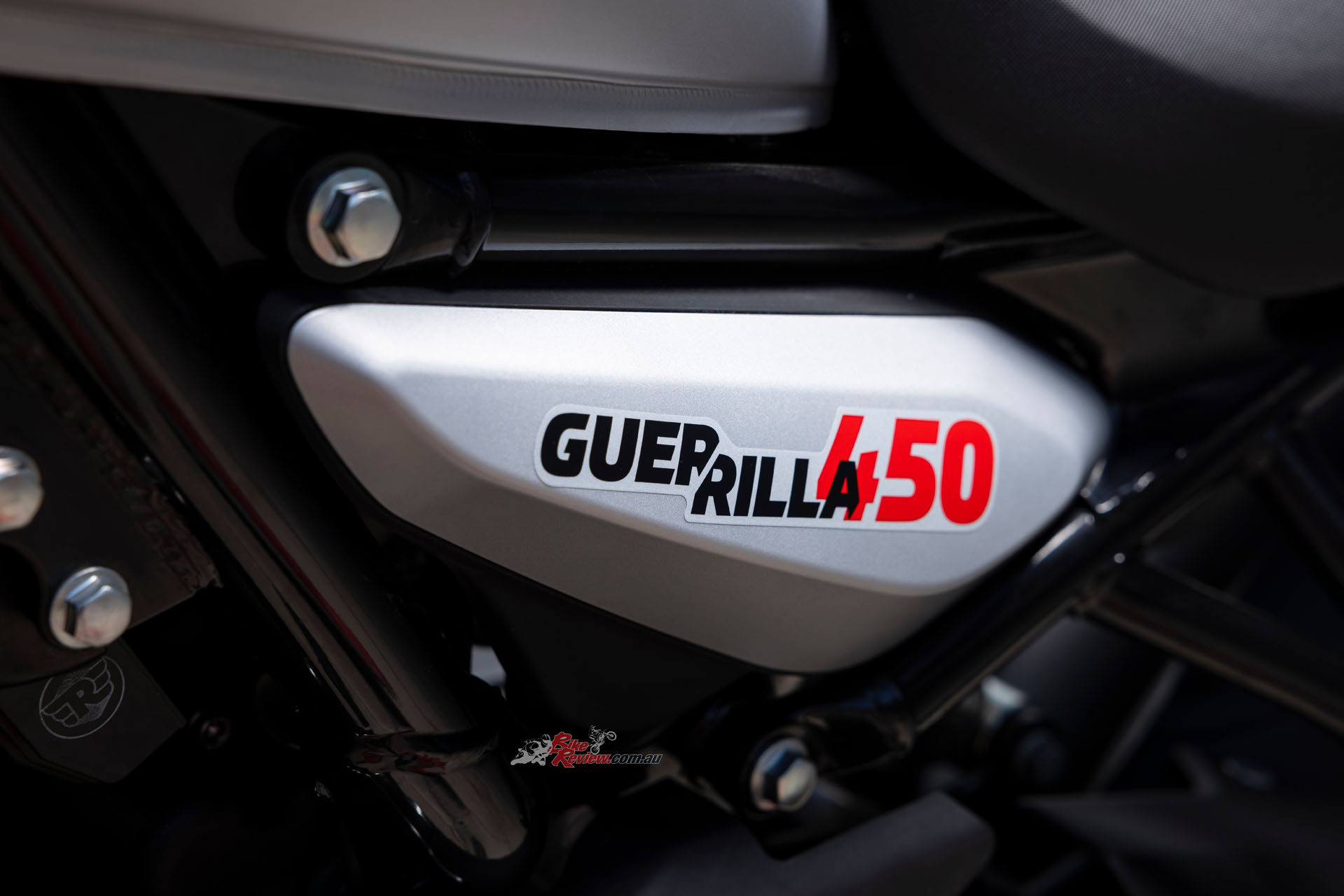The Guerrilla is 2090mm long, with a wheelbase of 1440mm and a seat height of 780mm. It is 833mm wide and 1125mm tall without mirrors, and ground clearance is 169mm. Weight comes in at 191kg wet and ready to ride, or 174kg dry.