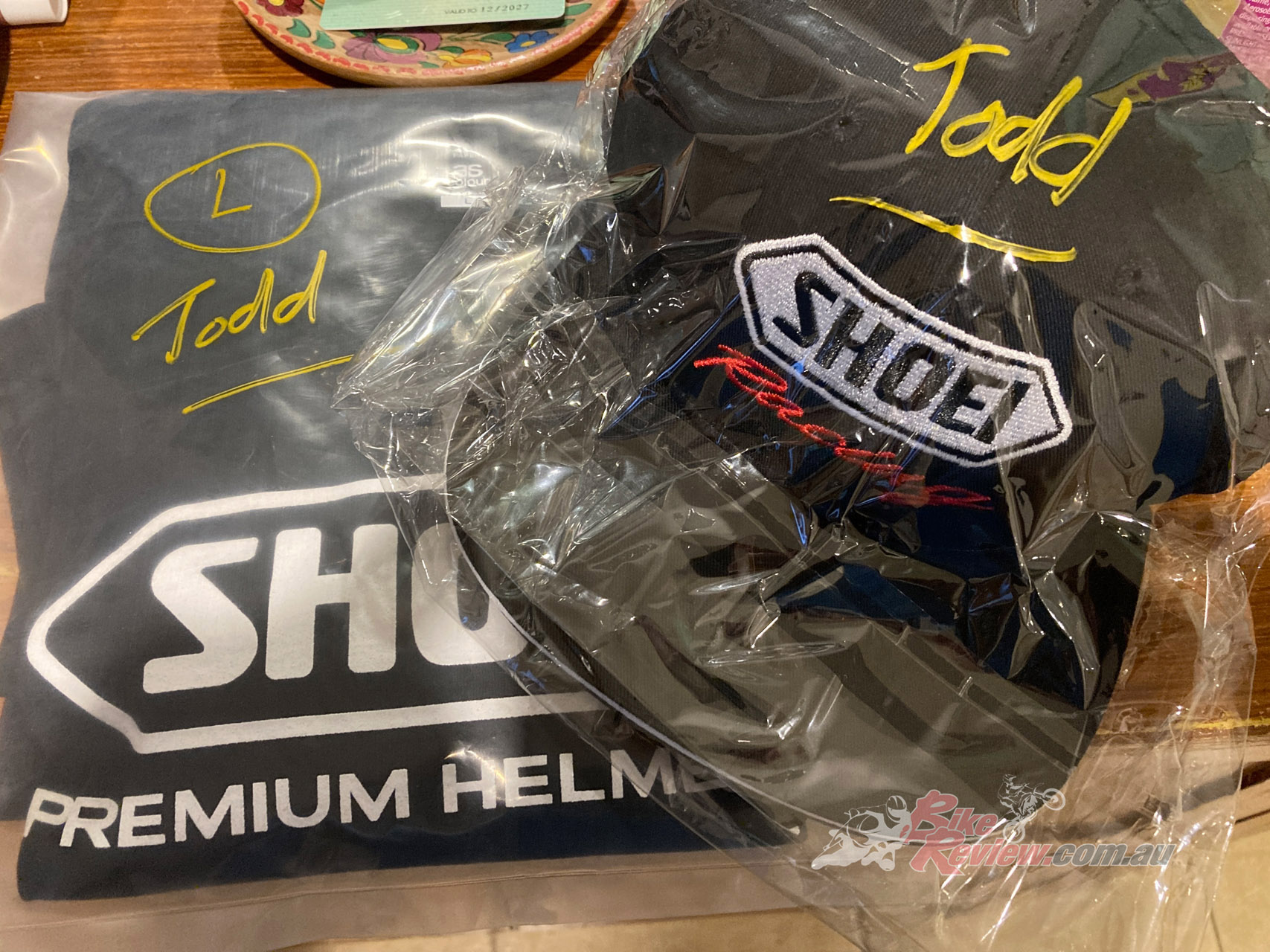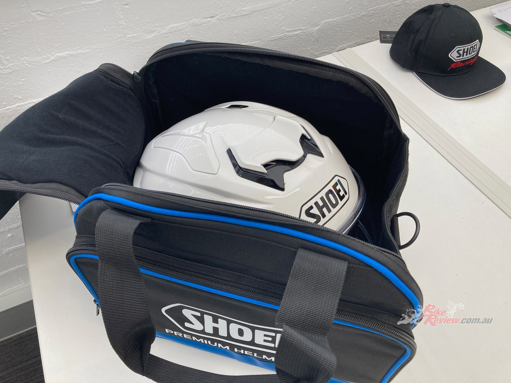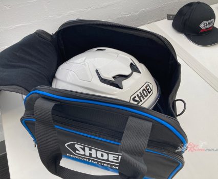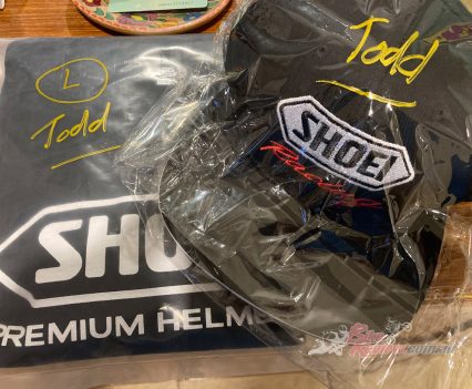 My test GT-Air 3 came with a SENA Comms system ($599 RRP seperate review on the way) as the GT-Air 3 is Comms Ready. It also came with a neat SHOEI helmet bag ($149.95 RR) for my launch trips, keeping the lid safe and sound as my hand luggage on flights, and SHOEI threw in a cap ($29.95 RRP) and shirt ($29.95 RRP) , which I gifted to Toddy Chappo (He’s a mad SHOEI fan, here is his GT-Air II review) I also opted for a Dark Tint ($119.95 RRP) and Silver Spectra ($169.95 RRP) iridium visor.