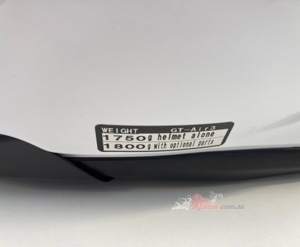 The GT-Air 3 is about 200 grams heavier than the GT-Air II, which isn’t much, and I can’t feel that weight difference, even after a long day of riding. The only noticeable thing for me in terms of sizing is the new GT-Air definitely has a bulky look about it. In fact, it’s the first SHOEI in white that I have thought doesn’t look all that cool. I reckon it looks better in graphics, just due to the broad base.