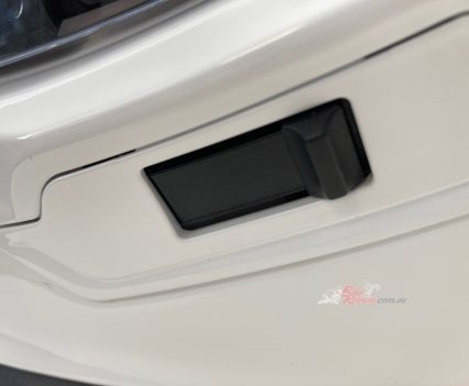 The drop down visor – one of the all-time best features of the GT-Air. If you haven’t owned a lid with one of these, you need to try one out. Not the most stylish look in the world, but absolutely one of the most handy in the motorcycle world! Easy to use, glides up and down with the slider behind your left ear area, easy to change and unlike many internal visors, the GT-Air 3 one is super generous in size.