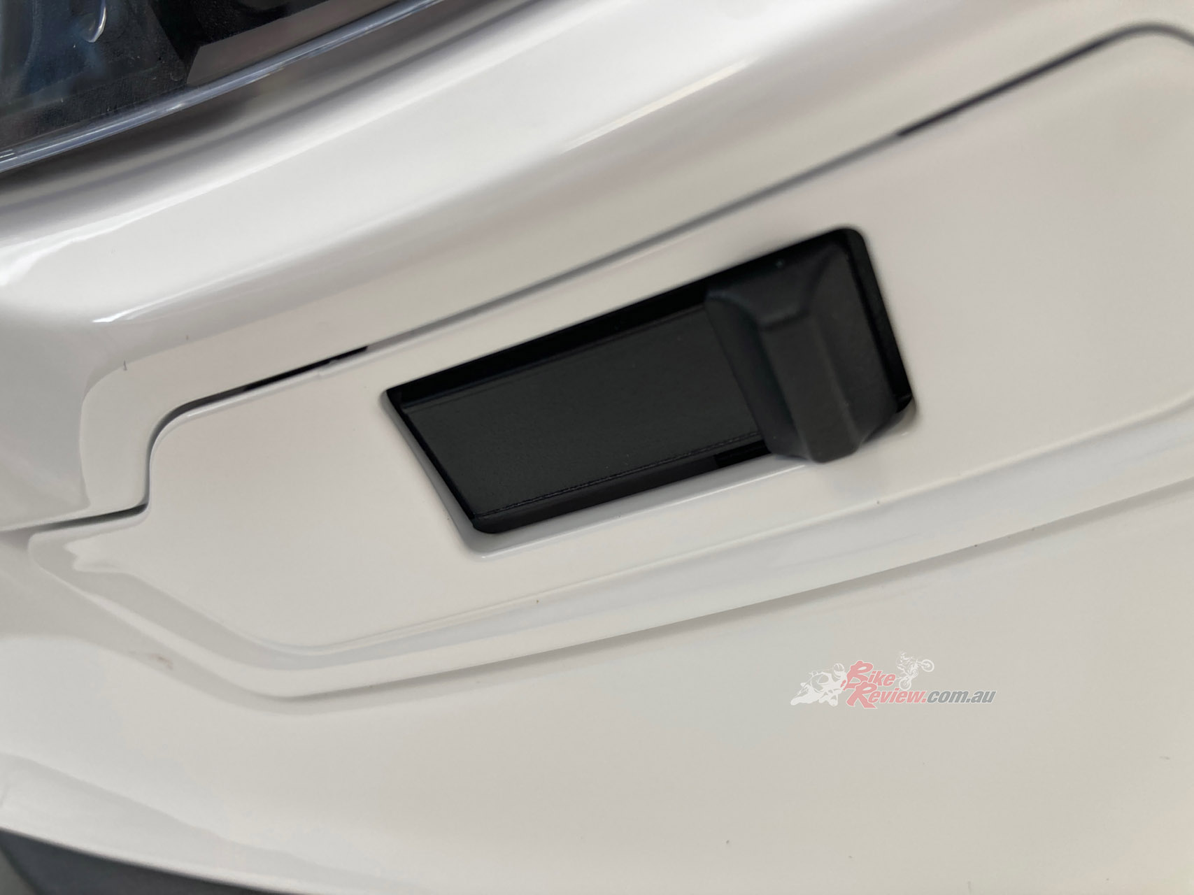 The new aero deflectors can be seen here, and the drop-down visor slider, which is easy to find and operate.